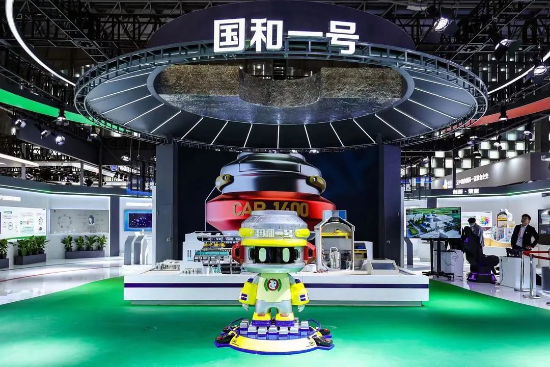 在展台“C位”,可以看到“国和一号”的大型全岛模型。“国和一号”是世界上最大的非能动压水堆核电站,每年可减少二氧化碳等温室气体排放超过900万吨,具有安全系数高、经济性能好、创新成果多等特点和优势。