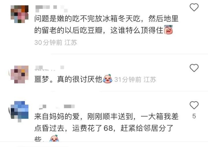 一位网友如是说:“我挺喜欢吃的,就是架不住天天吃,真的快吃吐了。”更令某些网友崩溃的是,“吃了快一个星期了,看着就要吃完了,一转头,别人又给送了一袋”。