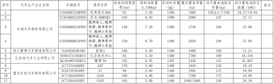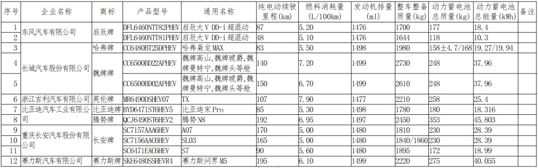 注:插电式混合动力汽车燃料消耗量仅包括传统燃料/不含电能折算。
