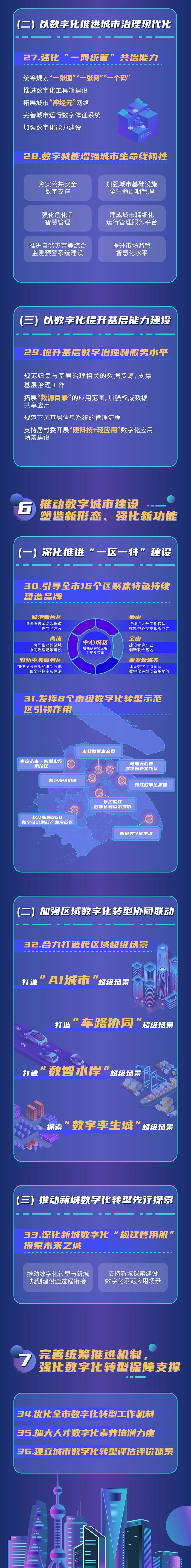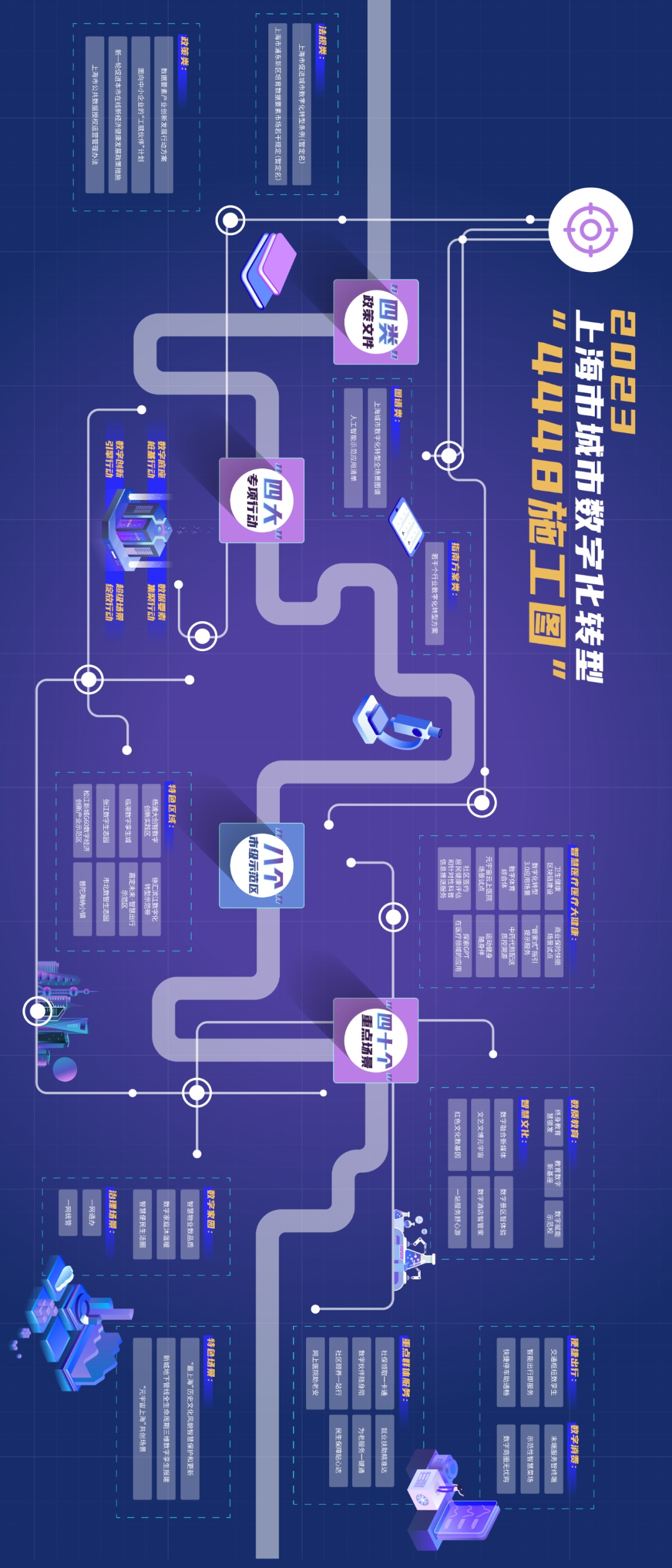 上海市城市数字化转型全面深化,以“4448”施工图为抓手,打造数字经济升级版、智慧城市样板地,加快迈向具有世界影响力的“国际数字之都”。“4448”施工图即制定法规、政策、图谱、方案四类文件,实施数字底座桩基、数据要素集聚、数字创新引擎、超级场景绽放四大专项行动,推进四十个重点应用,持续建设八个市级示范区。详见↓