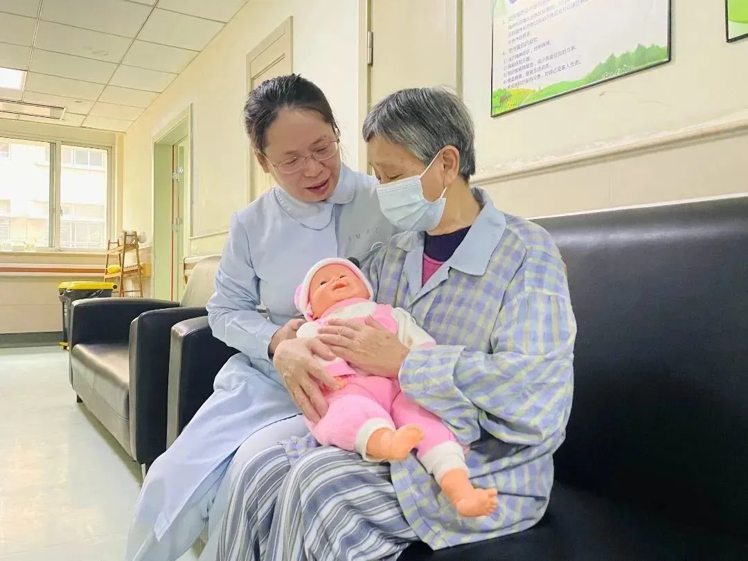 一次家属探望,我发现王阿婆和外甥女在一起,变得情绪平和、和蔼可亲,不停抚摸外甥女的双手。我立即想起文献中的“玩偶疗法”,向王阿婆女儿了解到,外甥女是她一手带大的,而今长大了,很少来看望,王阿婆会感到沮丧。我建议女儿可以带一个类似外甥女小时候的玩偶,当王阿婆看到小玩偶时,麻木的表情一下变得柔和。