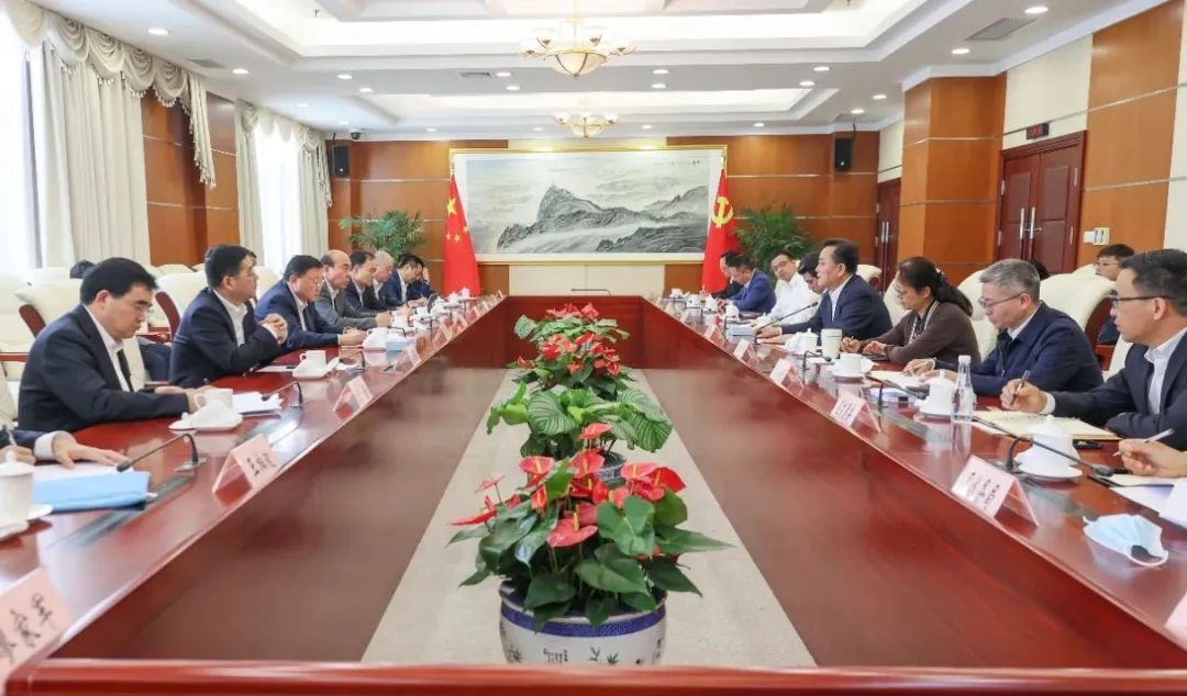 5月12日上午,中国交通建设集团有限公司(以下简称“中交集团”)代表团来松江调研,区委书记程向民会见中交集团党委书记、董事长王彤宙一行,双方就深化央地合作展开座谈交流。