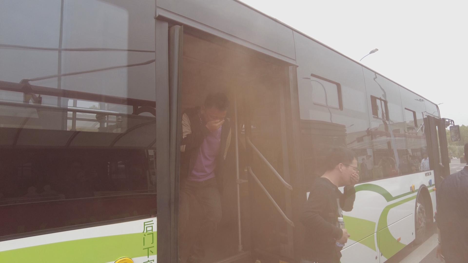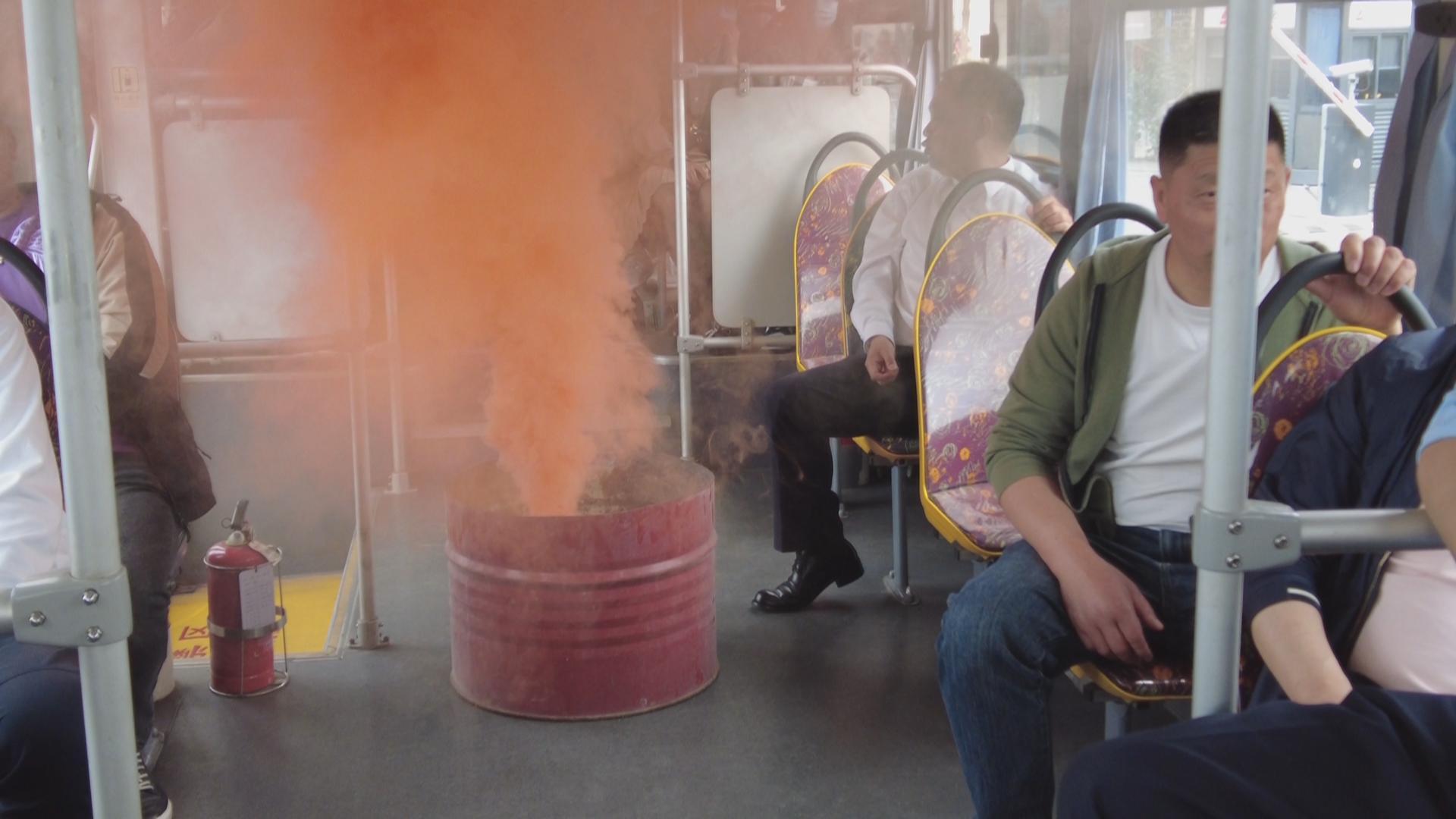 今天是我国第十五个“全国防灾减灾日”,很多单位组织开展培训演练、互动体验和实验展示等活动,学习防灾、减灾、救灾及安全应急知识,在模拟演练中增强应对突发灾害的自救互救能力。在龙华东路上的大型公交枢纽站里,驾驶员与站点安保人员共同参与了一场实战演习,模拟运营中的公交车上突然出现不明烟雾的情形。