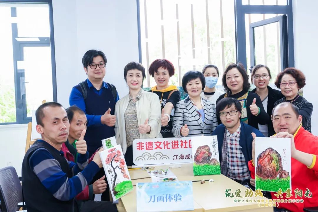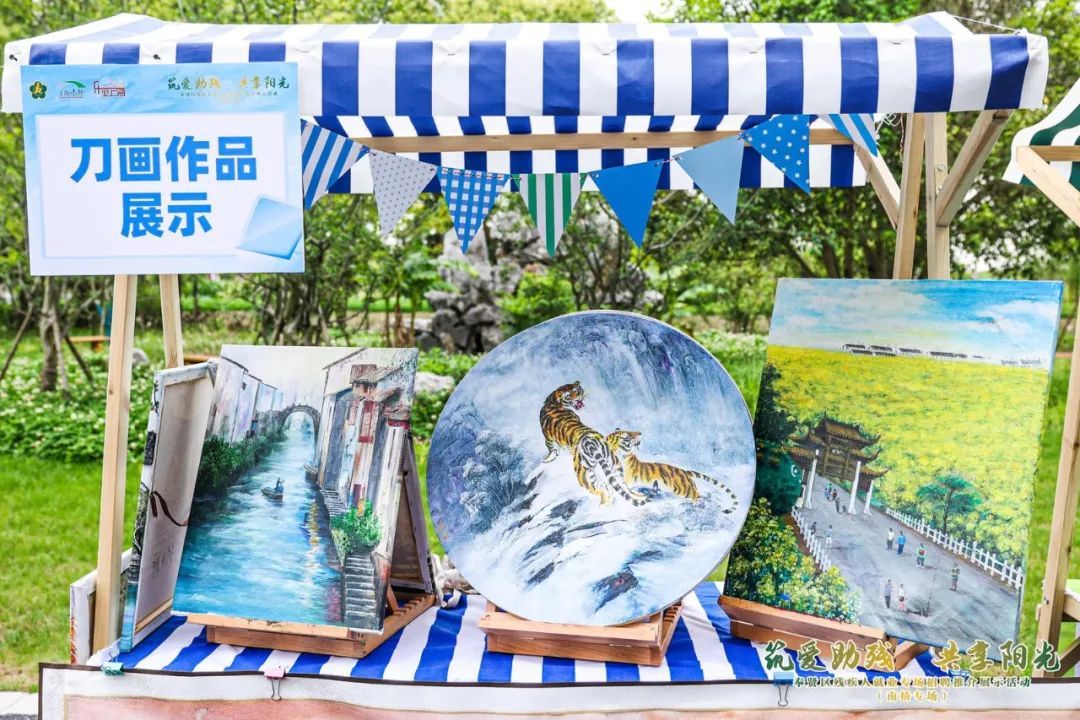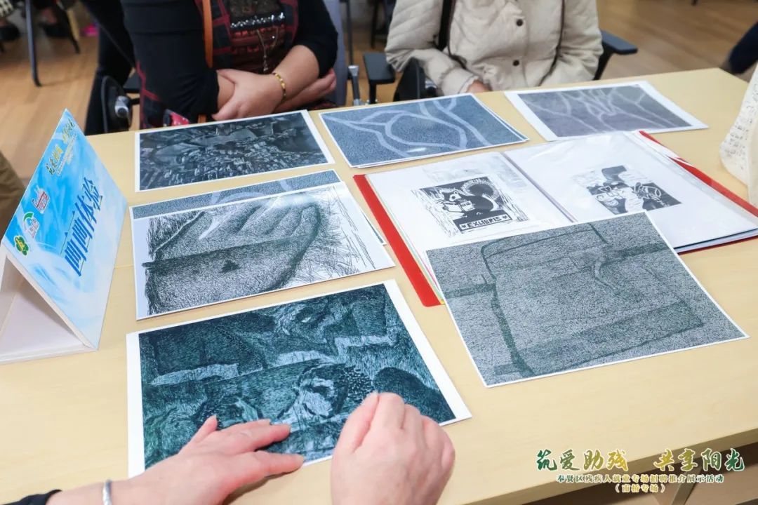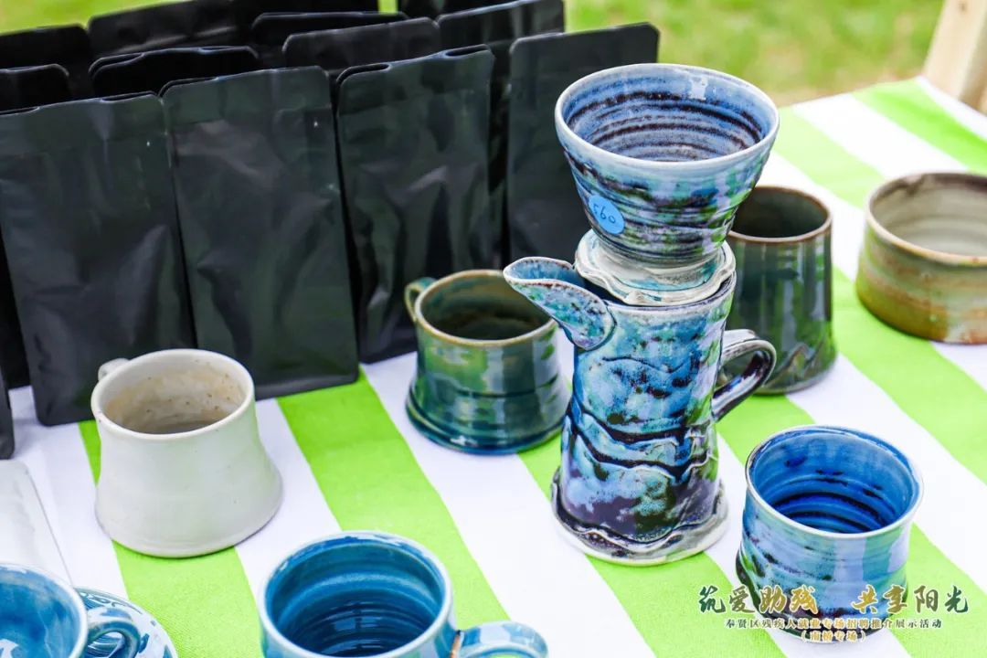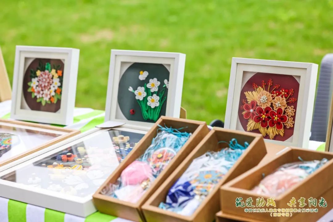 活动现场展示了残疾人非遗等手工作品,包括非遗撕纸、古陶、刀画、扎染、航模、土布、衍纸、麻绳编织、手工编织等。
