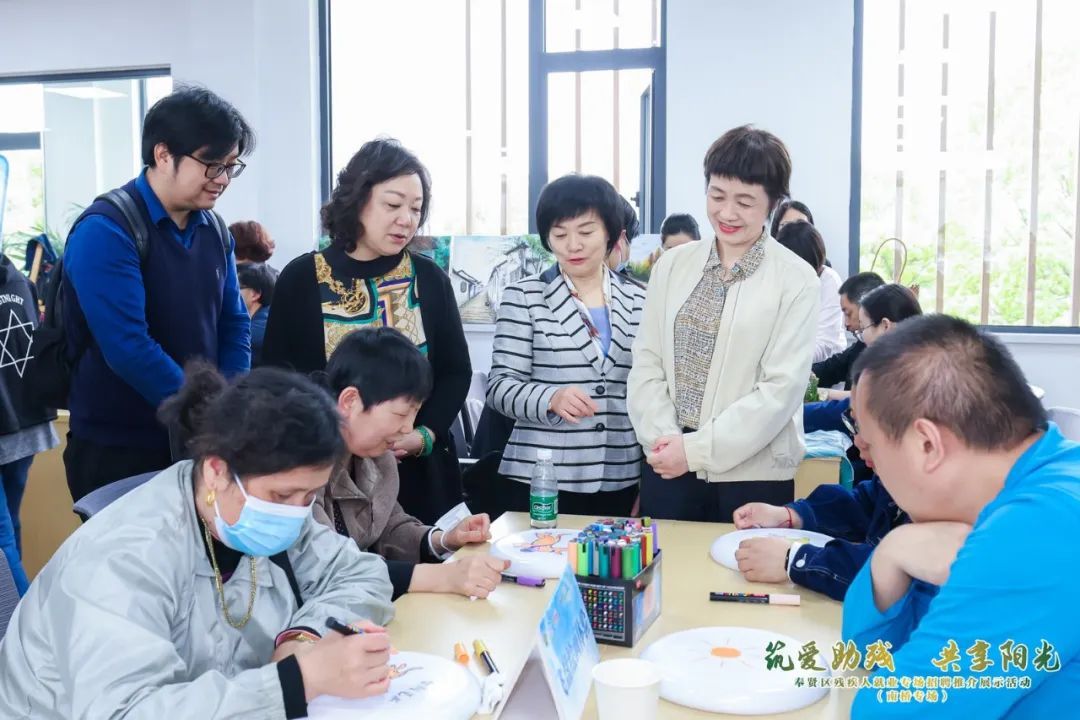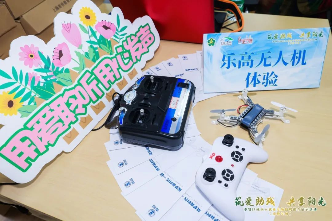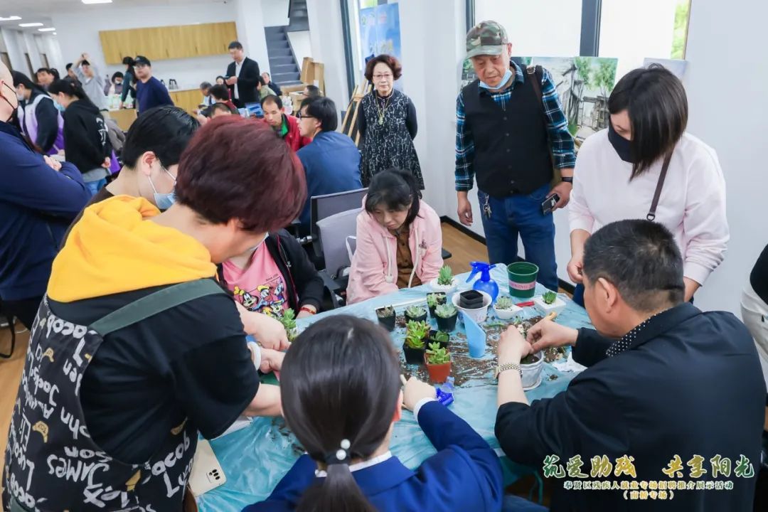 在互动区域内,来自南桥镇残联结对公益社会组织和爱心企业的代表,为残疾人进行手冲咖啡、撕纸、多肉培育、衍纸、乐高无人机、创意手工、飞盘等DIY现场教学,深受大家喜爱。