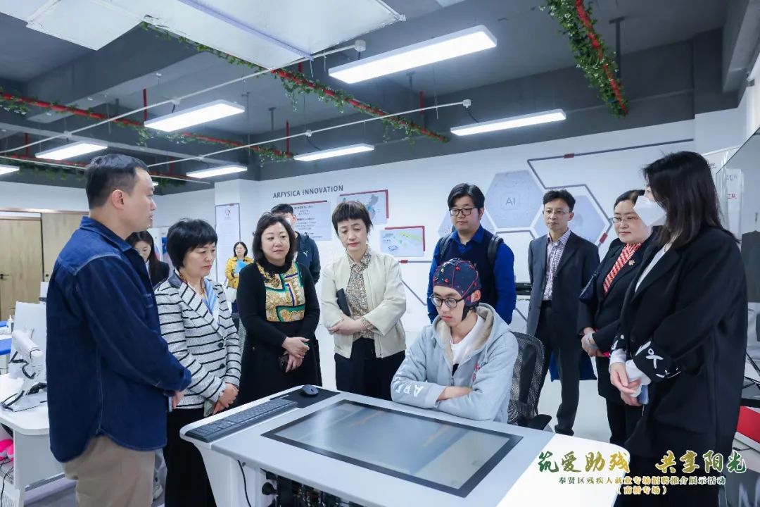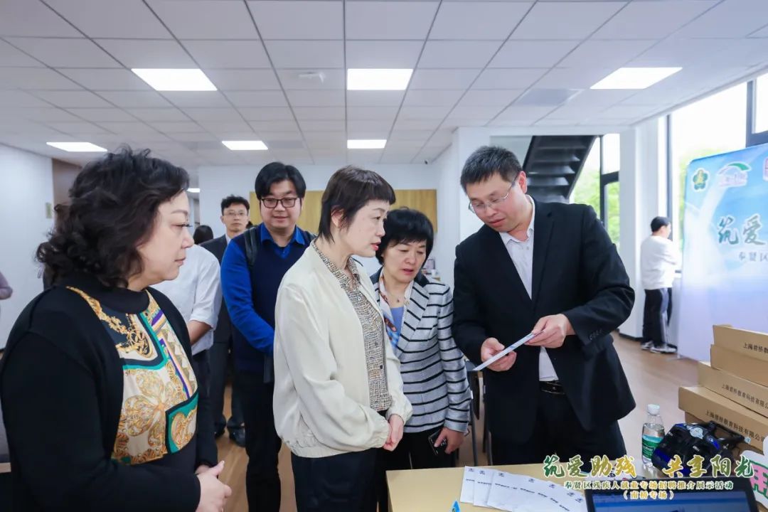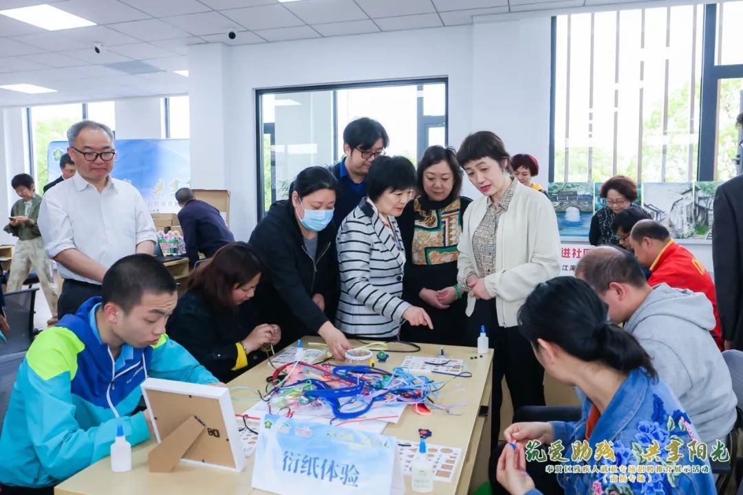 与会领导还专题走访了江海园区高新技术企业——上海术理智能科技有限公司,亲切慰问企业招录多年的听障平面设计师,深入调研一线残疾员工工作生活情况。同时还调研走访了江海村乡村振兴发展点位——无人机翼枭航模展厅和良渚文化园产业。