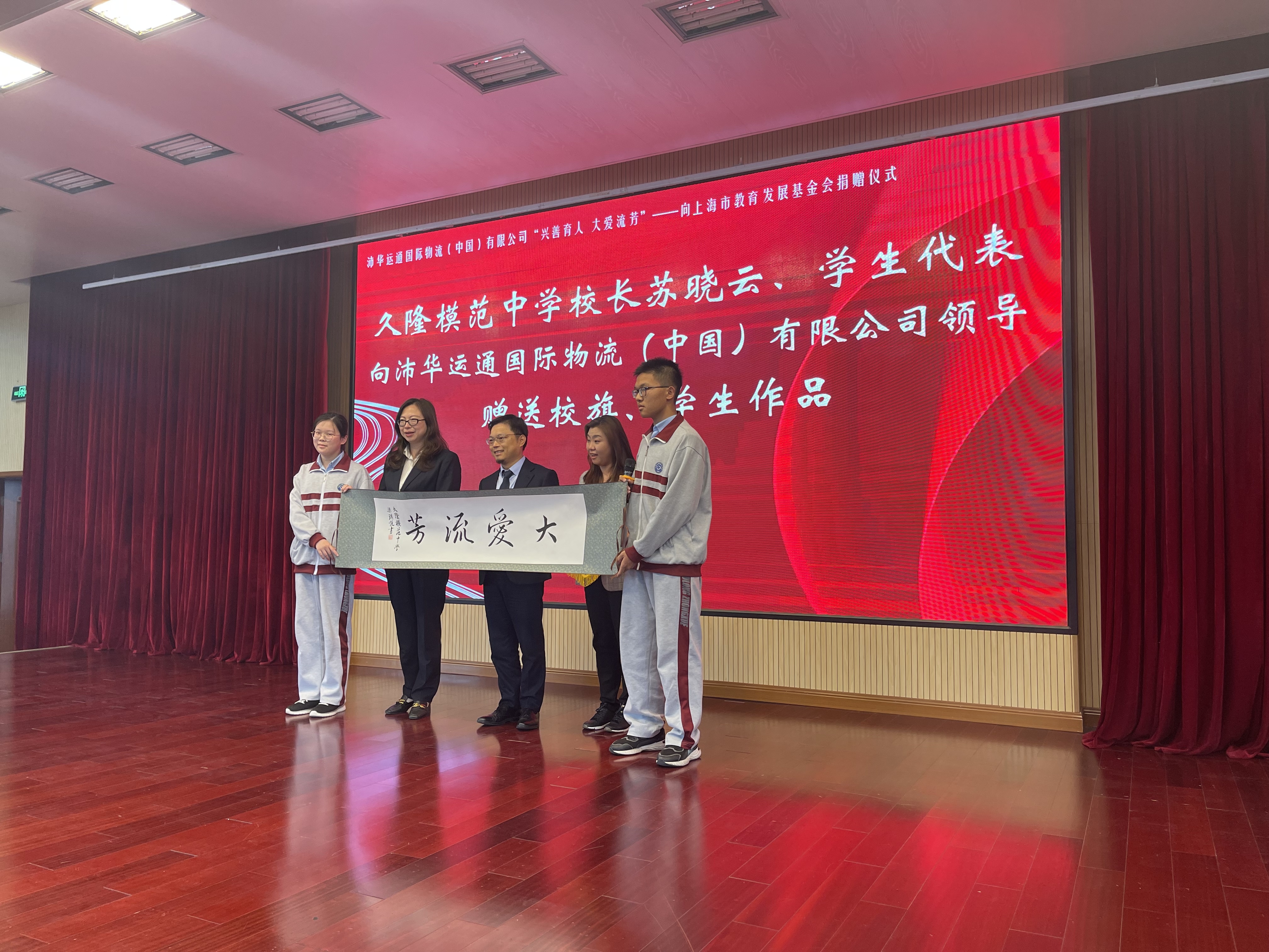 5月11日,“兴善育人 大爱流芳”沛华运通国际物流(中国)有限公司向上海市教育发展基金会捐赠仪式在上海市久隆模范中学礼堂举行。