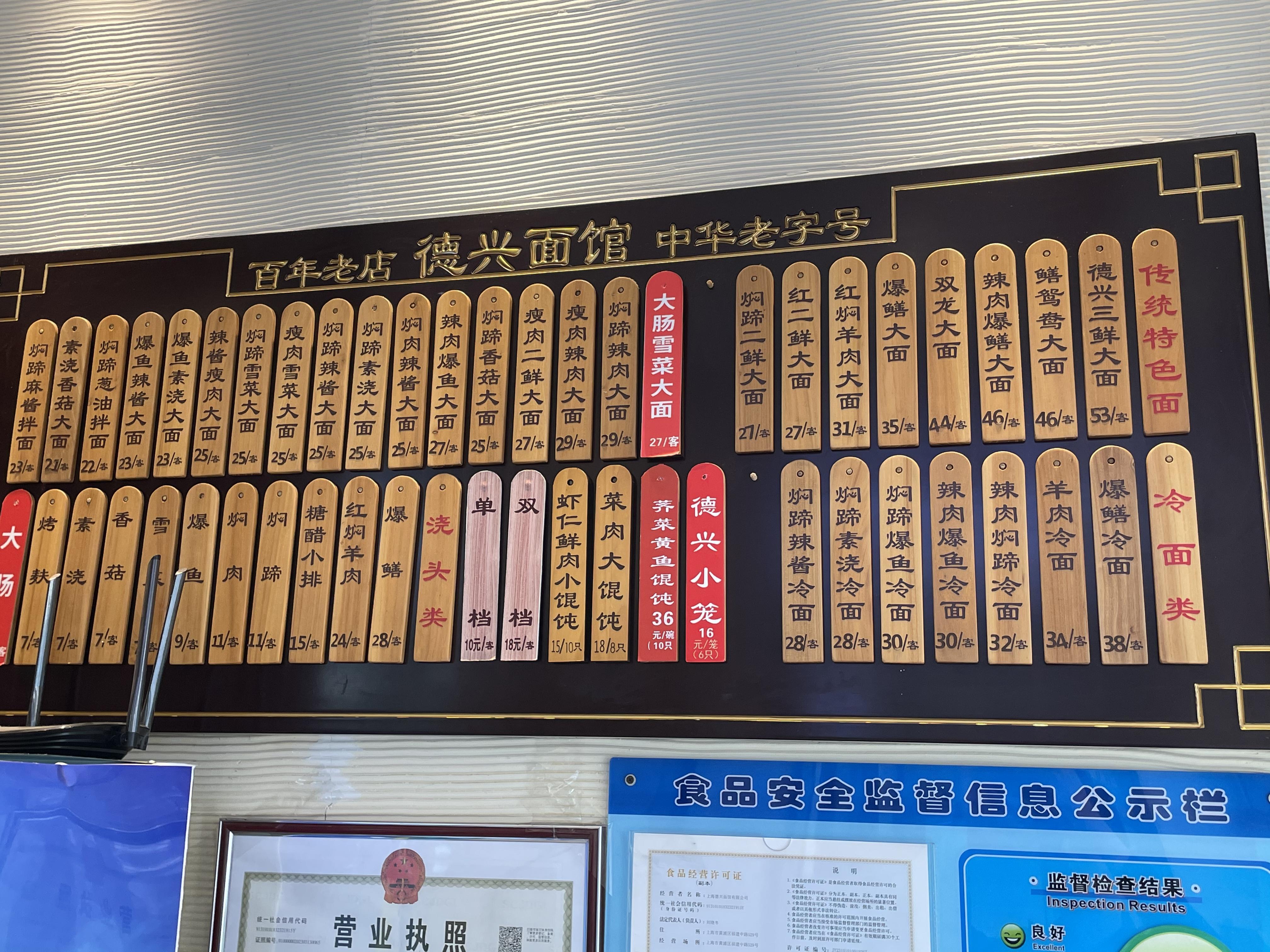说起德兴馆的历史,毛师傅如数家珍。德兴馆的创始人叫沈遐兴,于光绪年间一八七八年在老闸桥南堍(现福建中路桥)附近,也就是福建中路529号创立了该品牌,以经营苏帮面馆为特色,其焖蹄、焖肉、爆鱼、爆鳝等更是声名远扬的浇头。历经百年变迁,德兴馆也越开越多,并研制出如虾籽大乌参、糟钵头和青鱼秃肺等本帮名菜。但这家店,却一直坚持经营面类。
