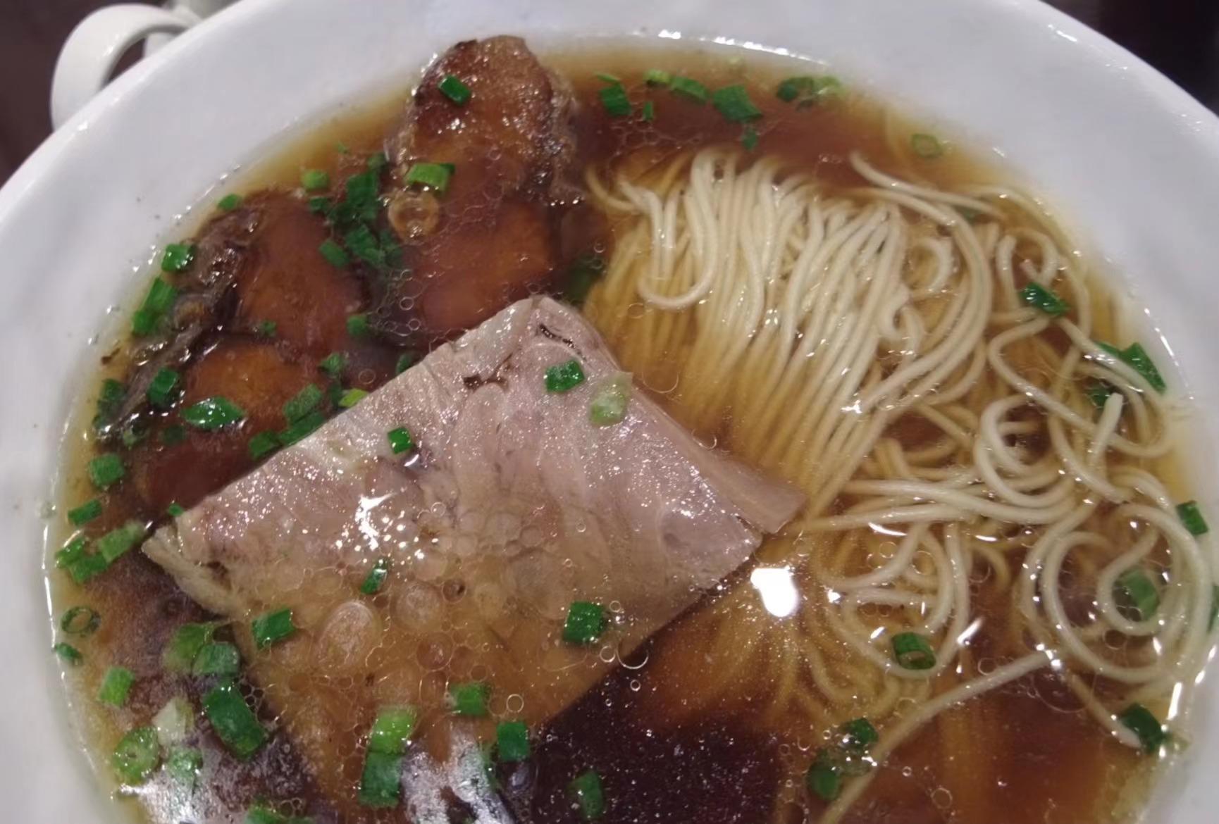 随着城市更新步伐的加快,该区域即将开启新生。“周边的居民基本都已搬走了,现在生意不及前几年的一半。我不知道什么时候关店,更不知道未来会搬到哪里,但只要开门迎客,我们就会精心烧好每一块焖蹄、焖肉,下好每一碗面条,要对得起门口的两块牌子。”毛师傅用手指向门头“德兴馆”的牌匾和墙上挂着的“中华老字号”铭牌,这碗承载着醇厚历史和匠心美味的面届“典范”,道尽了苏州河畔、黄浦江边的百年记忆。