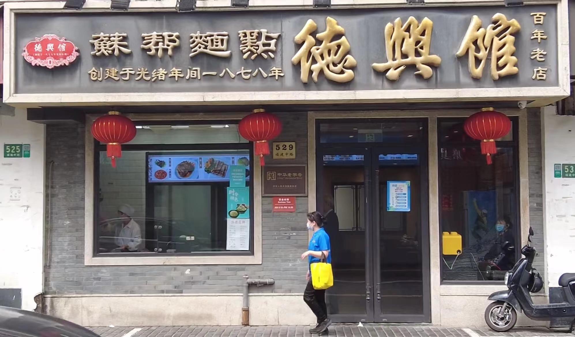 沿北京东路行至福建中路口,有家门面不大的“小店”仍在经营。推开店门步入其中,七八张桌子有序摆放,不时有衣着光鲜的老克勒进店,坐下来点上一碗面条。很多人不知道的是,这家店,已经在这里经营了140余年,它的名字叫做——德兴馆。