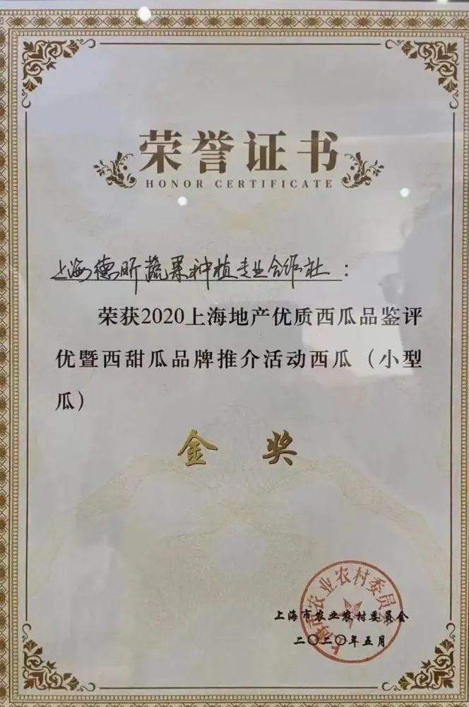 据了解,“金山小皇冠”采用标准化绿色栽培模式,应用绿色生产技术、自然成熟,不用调节剂,人工授粉。拥有卓越品质的它,在上海市西瓜评比大赛中屡屡获得市级评比金奖。