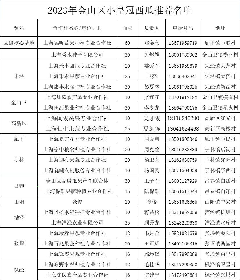 小编为大家整理了金山区小皇冠种植核心基地名单。