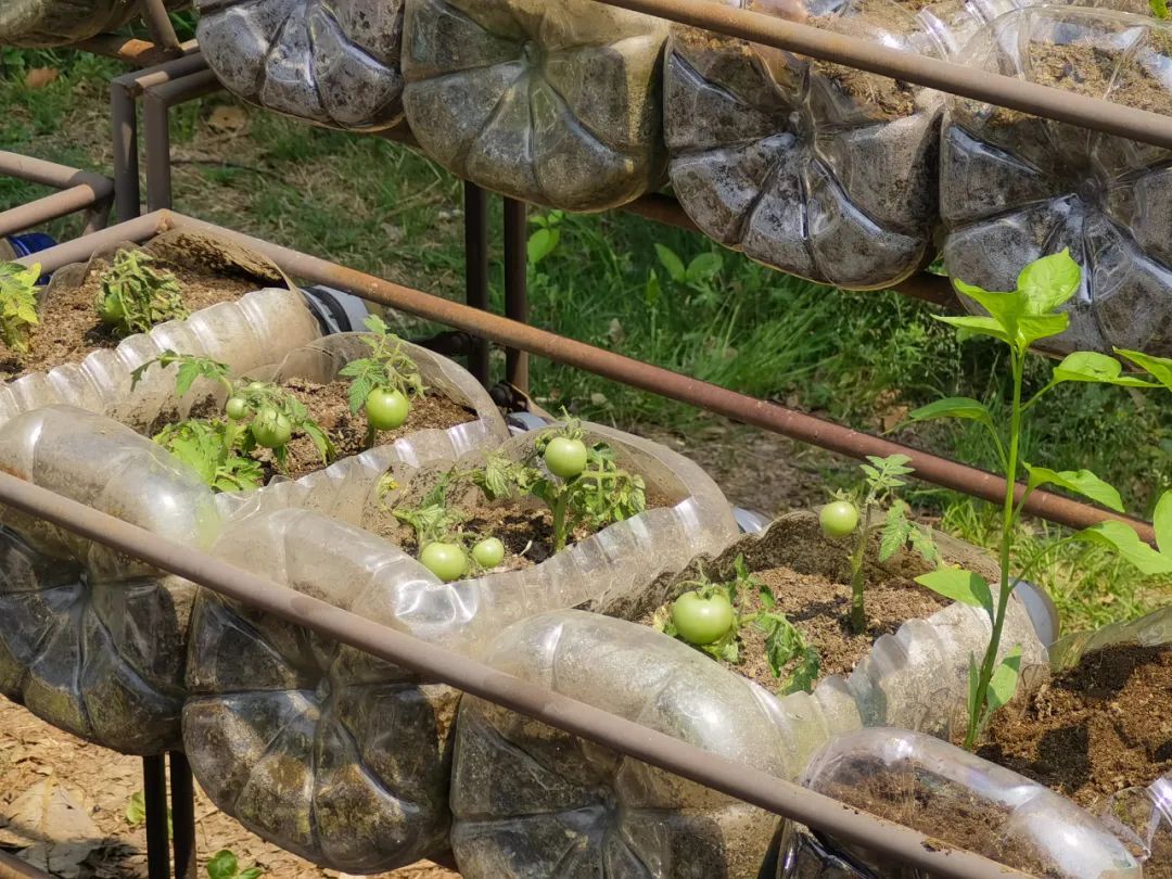 在岳阳街道龙兴居民区,回收来的塑料瓶改造填土后依次排开,成了一座立体、环保的“亲瓶菜园”,也成了社区一景。5月13日早上,部分社区亲子家庭来到这里,种下辣椒、番茄和多肉植物,为刚经历丰收的“菜园”开启新的“生命之旅”。
