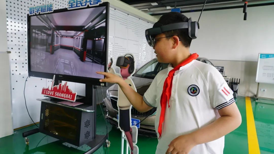 此次活动邀请了来自虹口区多所小学的学生代表,参观5G数字体验中心,了解人工智能等数字技术在设计领域的运用;体验虚拟现实技术在汽车修理的场景运用;观看无人驾驶车辆和无人飞机在校园里穿梭飞行;学习有声读书制作成果。