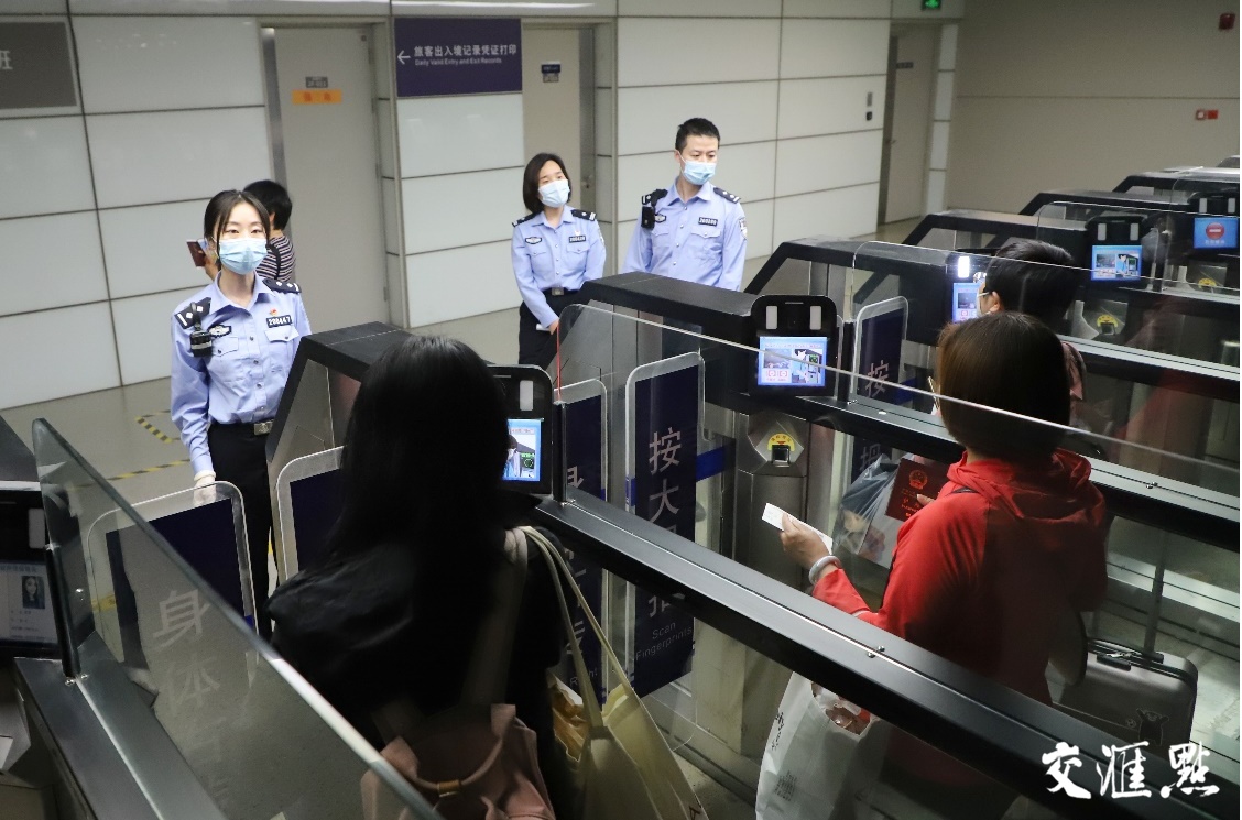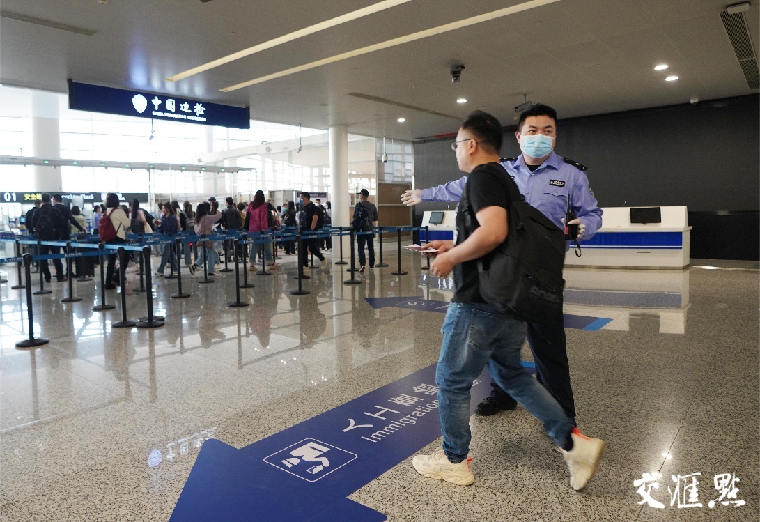 交汇点讯 5月15日,国家移民管理局“全面恢复口岸快捷通关”正式实施。当天零时,南京空港口岸迎来了首架入境航班,近九成旅客选择通过边检快捷通道入境。
