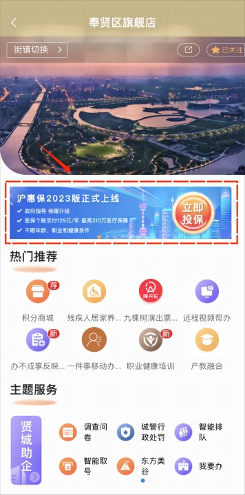 第二步:在“奉贤旗舰店”首页,点击“沪惠保”相关banner进入投保页面;