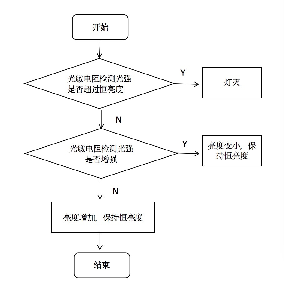 智能感光与照明恒亮度自动调节系统则是在教室照明灯具安装光敏电阻光照亮度检测模块,检测相应范围的光照亮度是否超过恒亮度范围,自动关闭或调整灯具亮度,使该区域光照亮度能处于恒亮度值范围。