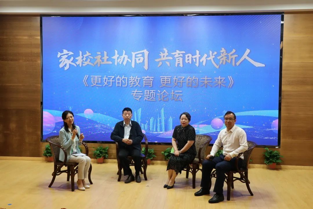在新的教育要求下,如何推进协同育人机制建设、共建家庭教育指导服务体系?专题论坛聚焦话题《更好的教育,更好的未来》展开,全国知名社会学专家、上海大学教授胡申生、上海外国语大学尚阳外国语学校校长、教育管理专业正高级教师席璐以及市党代表、普陀区人大代表、家长代表夏时勇围绕“家校社协同育人”进行交流,从不同角度分享了学校、家庭、社会三者的感受,共同探讨如何为孩子提供更好的教育与未来。
