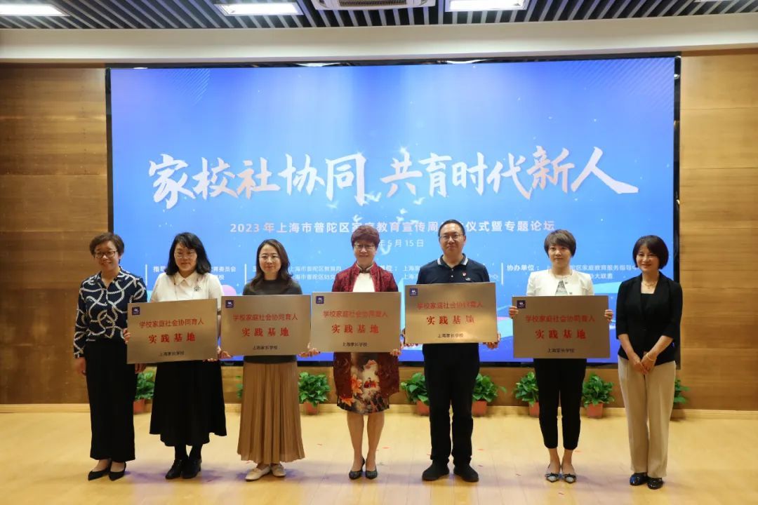 现场还进行了首批10家“学校家庭社会协同育人实践基地”授牌。依托基地建设这一抓手,上海极辰星儿童发展中心、上海市普陀区妇女儿童活动指导中心、上海市普陀区真如文英中心小学、上海市铜川学校、上海市普陀区新普陀小学、上海市曹杨中学、华东师范大学第四附属中学、上海市普陀区青少年教育活动中心、上海市儿童医院、波克公益基金会等10家基地,将通过创新协同机制、挖掘教育资源、打造优质课程、培育师资力量、孵化特色品牌,拓展家庭教育指导服务的空间、内容和方式,营造百花齐放的家庭教育工作局面。