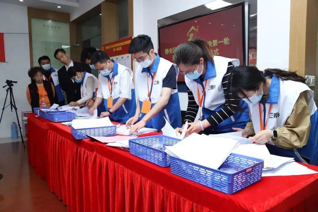 日前,静安区238街坊零星地块旧区改造第一轮居民意愿征询开箱计票仪式,在新赵家宅居委会举行。在居民代表、公证处公证人员,以及部分区党代表、人大代表、政协委员、律师、居民监督评议员等社会公信人士的全程见证、公证和监督下,经过30分钟的开票、唱票,最终同意率定格在99.48%,意愿征询高比例通过!