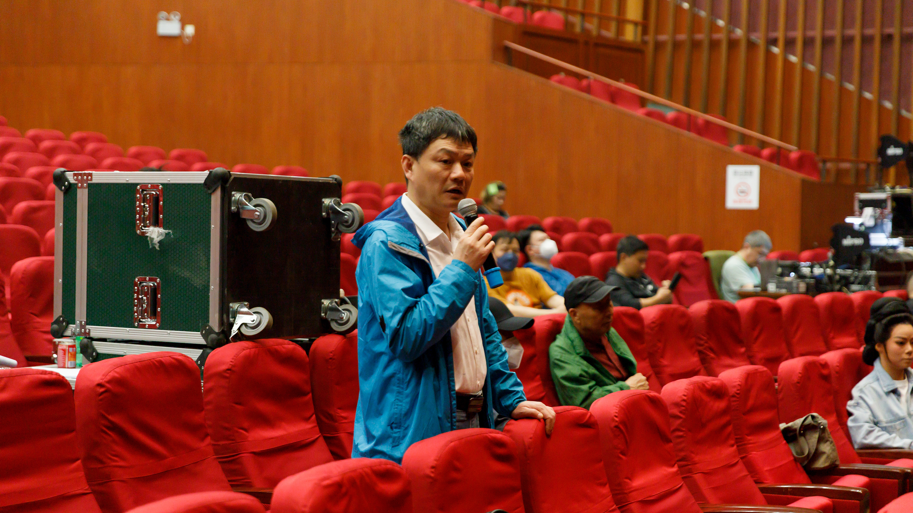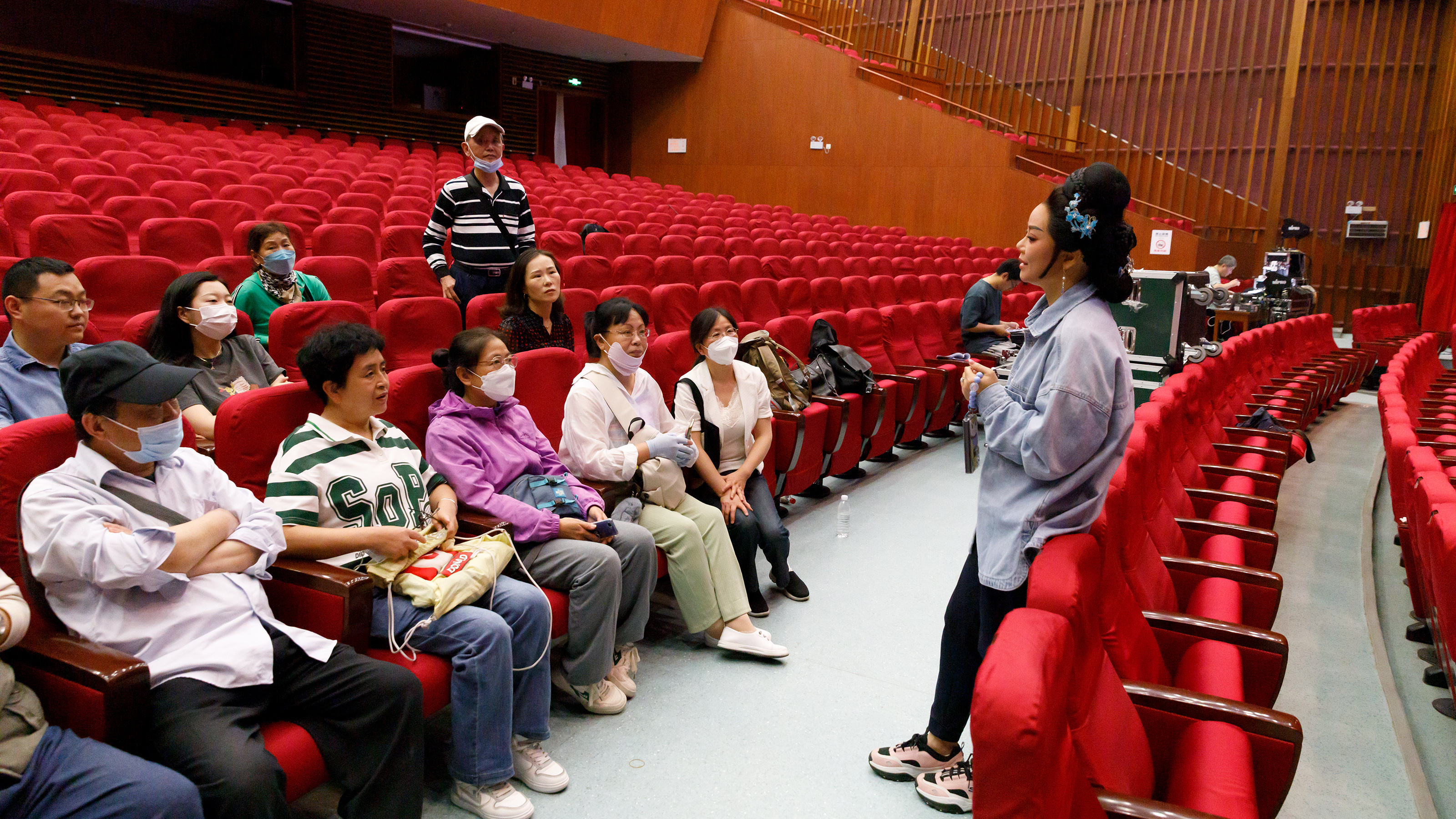 从后台穿过舞台走下观众席,好几位戏迷感受到了舞台上刺眼的灯光,一位老先生突然表示很想知道演员们在舞台灯光下是一种什么感觉。对此,高飞笑称:“灯光一亮,我们在台上也是什么都看不见,看不见观众席,只能看到旁边的同事,演对手戏的演员。所以每一次排练,都是我们对舞台的适应过程。而且这个灯光照在人身上会很热,唱传统戏的时候我们从里到外要穿好多层衣服,台上一站就出汗了,再唱念做打齐上阵,说汗如雨下一点也不夸张。”听完这番话,大家纷纷感叹做一名戏曲演员真是不容易啊。