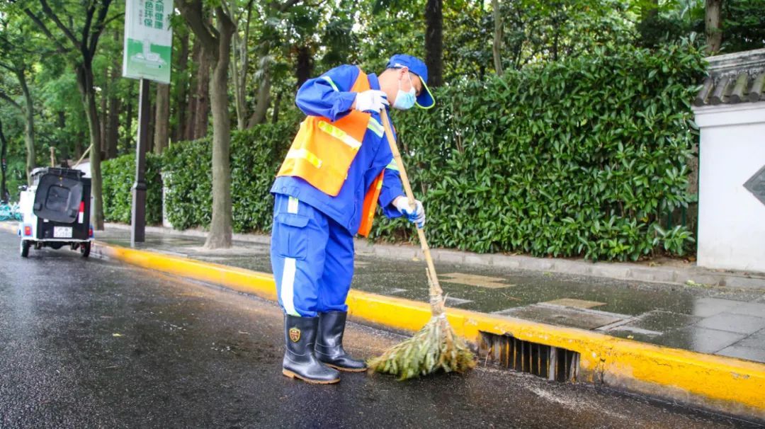 “积水多的路面容易打滑,所以都要及时清理,从早上五点开始就一直在扫。”环卫工人刘建璋说。