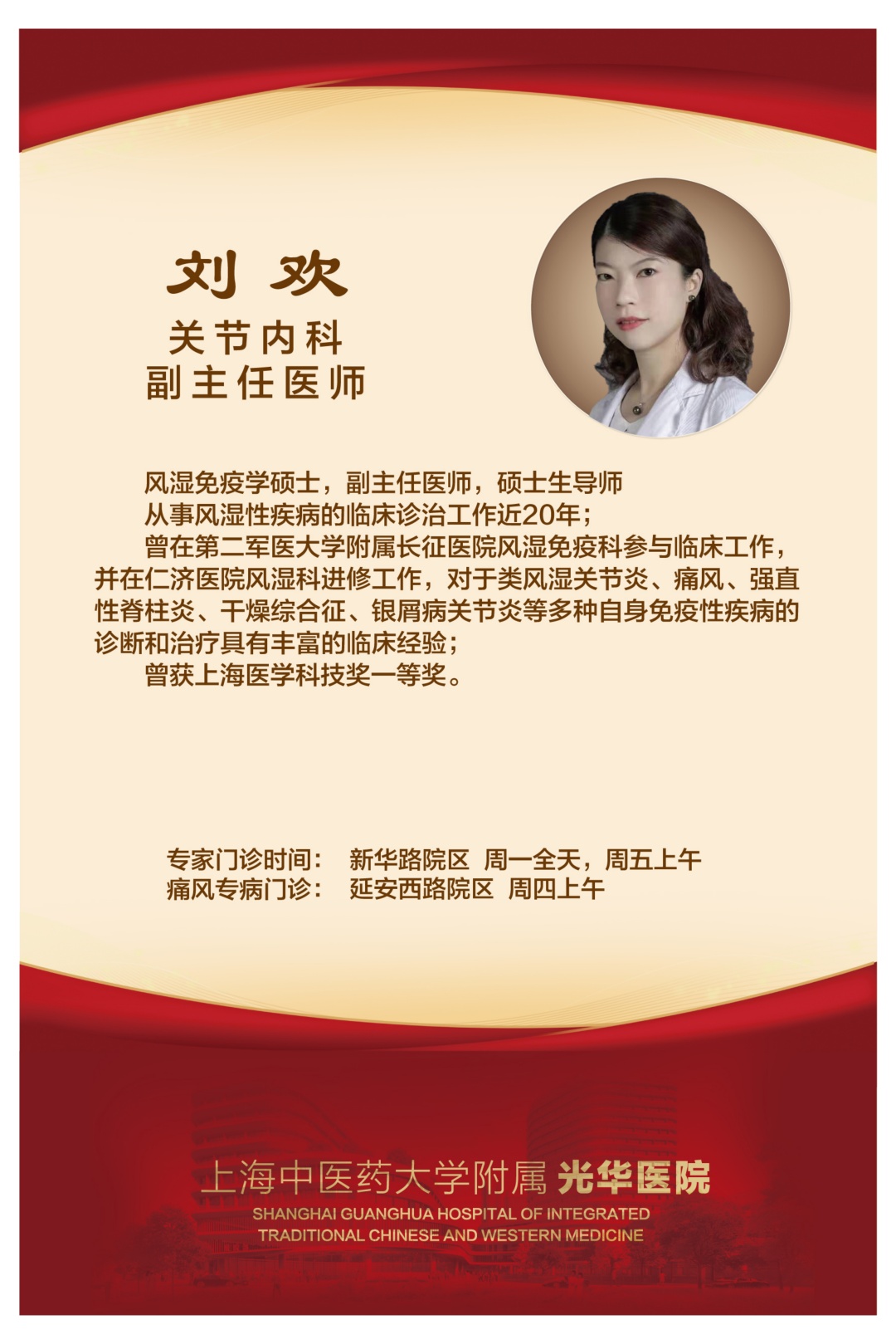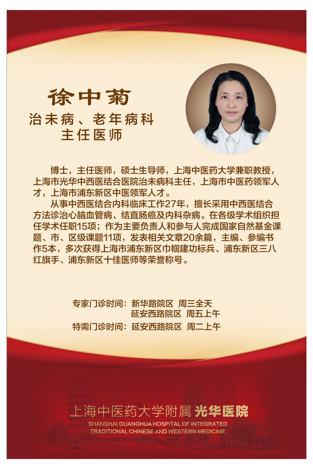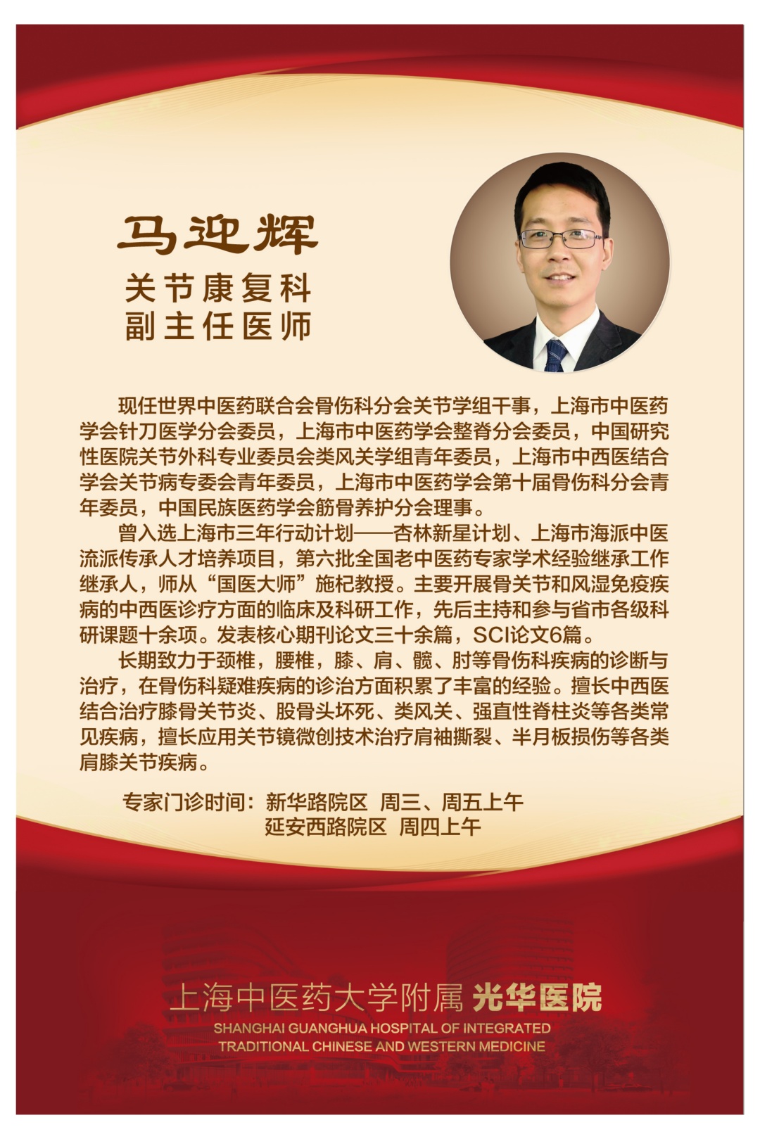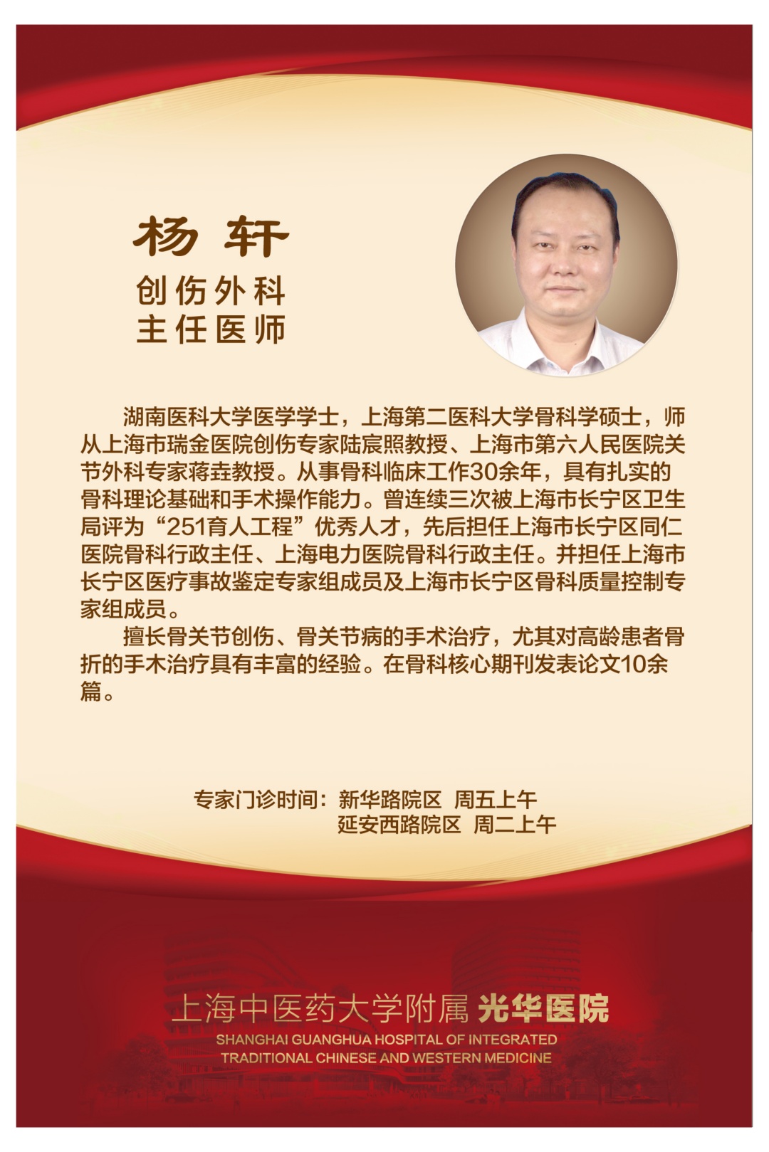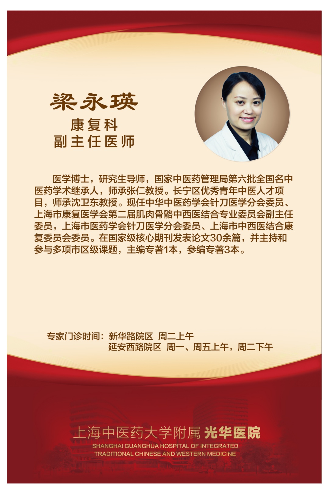 本周六(5月20日),上海市光华中西医结合医院将在中山公园米兰广场举行65周年院庆大型义诊活动,为广大市民提供中西医结合医疗(健康)咨询和中医适宜技术推广。