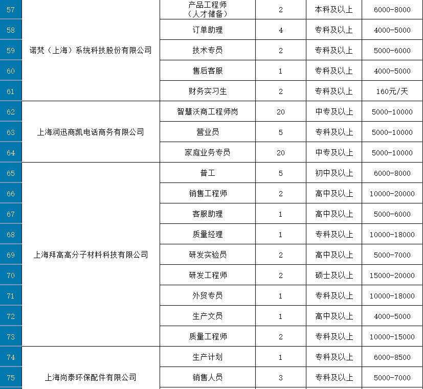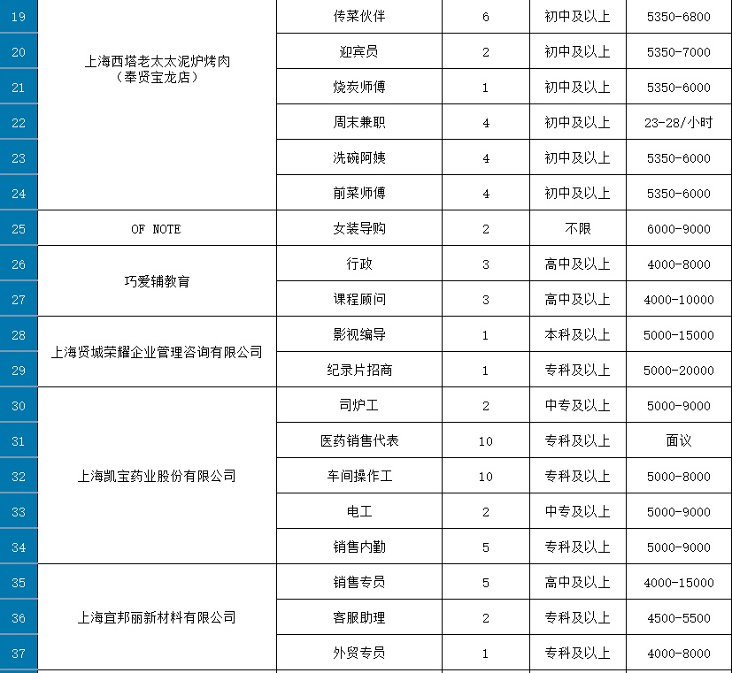 本次活动预计参会企业33家,招聘岗位包括:文员、行政、车间操作工、招商经理、仓库管理、电商运营/新媒体编辑、产品工程师(人才储备)、质量工程师、数控车工、电气控制工程等115个岗位,招聘人数377人。