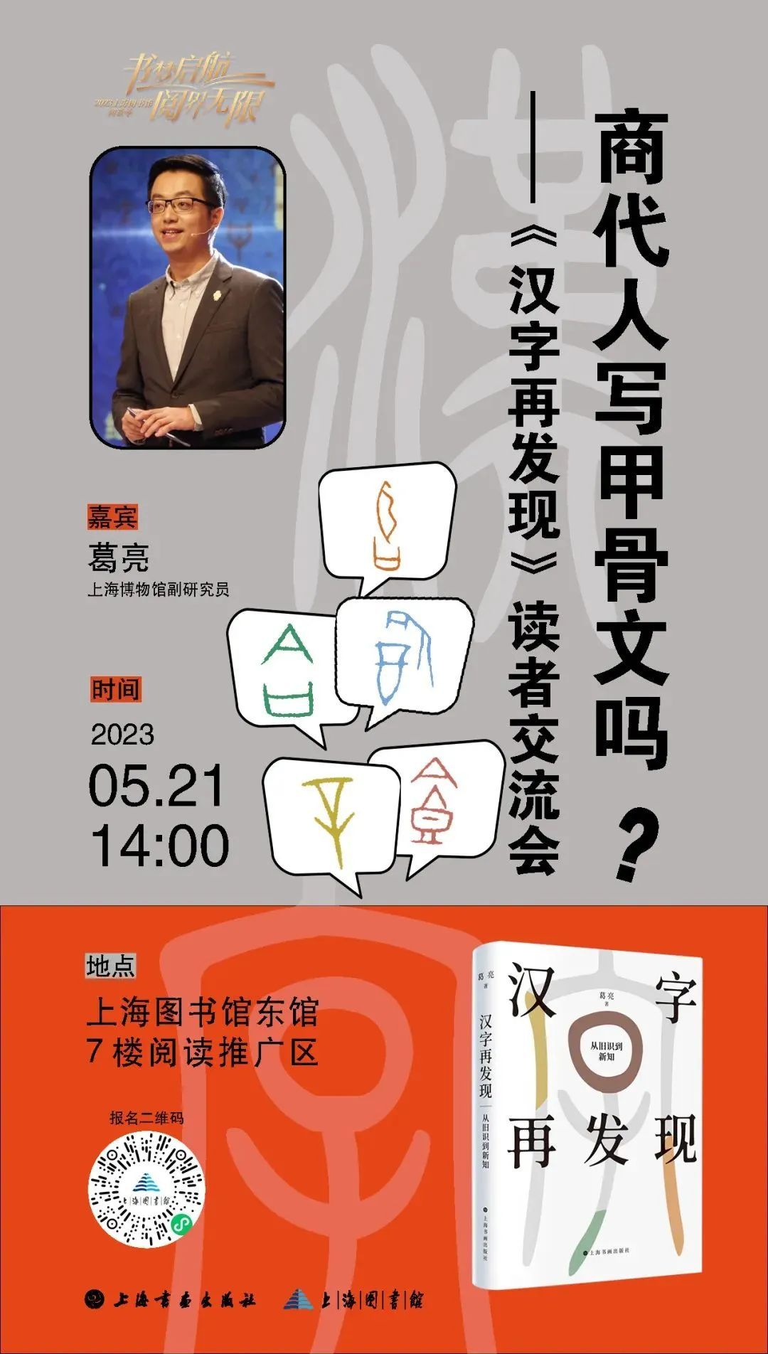 自发现至今,甲骨文这个从商代流传下来的古老文字已为国人所熟知,成为大家语言文字常识中的一部分。对于这个熟悉而又陌生的文化遗产,我们不妨畅想古人当时应用的场景:甲骨文是如何产生、怎样流传的?商代人写甲骨文吗?上海博物馆副研究馆员葛亮老师携《汉字再发现:从旧识到新知》一书,带领大家走近甲骨文及更多古文字,从客观的材料与科学的分析中探寻古人造字与用字的经验和智慧。
