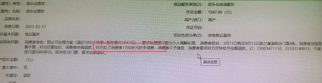 近期,有不少消费者向我们大倒苦水:“好不容易等到喜欢的歌手官宣了演唱会行程,但在抢票期间总是会遭遇一些烦心事!” 有的消费者收到门票后发现实际支付金额比票面价格高出数倍,莫名其妙多了很多附加费用;有的消费者已经支付“天价”票款,但是平台既不发货又不退款,不知道等到猴年马月;有的消费者订好了机票酒店,当天被通知没票;还有的消费者遇到点问题联系平台客服始终无人处理……