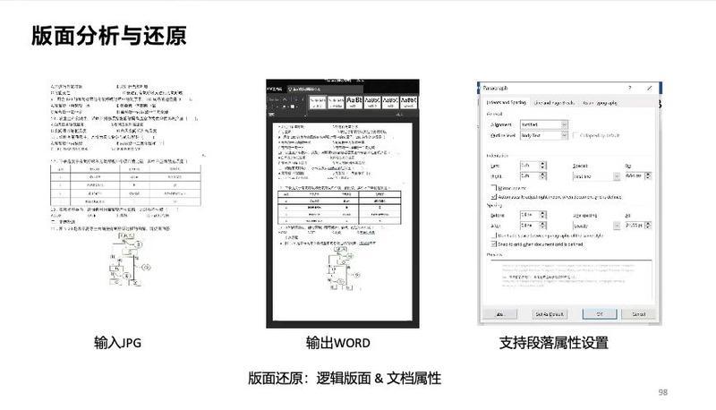 由于版面复杂多变、文本内容多样化等原因,文档被拍照、扫描成电子文档过程中时常出现漏字、错位,对此,合合信息持续突破版面分析技术在版面分割、区域间的逻辑关系处理等方面的难题,通过智能文字识别、智能图像处理等核心技术,确定文档中的文字位置、字体、大小和排版方式等信息,实现版面的分析和还原。