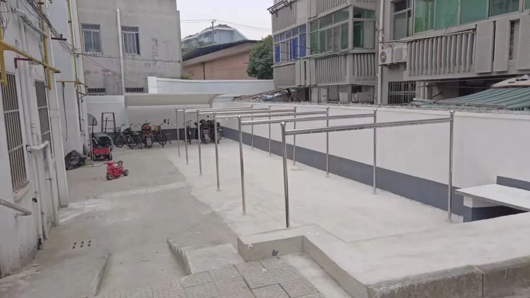 在漕廊公路430号处点位可以看到,原本破旧的围墙已被拆除,堆放在此处的杂物也已被清理干净,现在整齐排列着6套崭新的共享晾衣架。这些晾衣架均由不锈钢材质焊接而成,美观耐用,又防生锈,很受大家的欢迎。