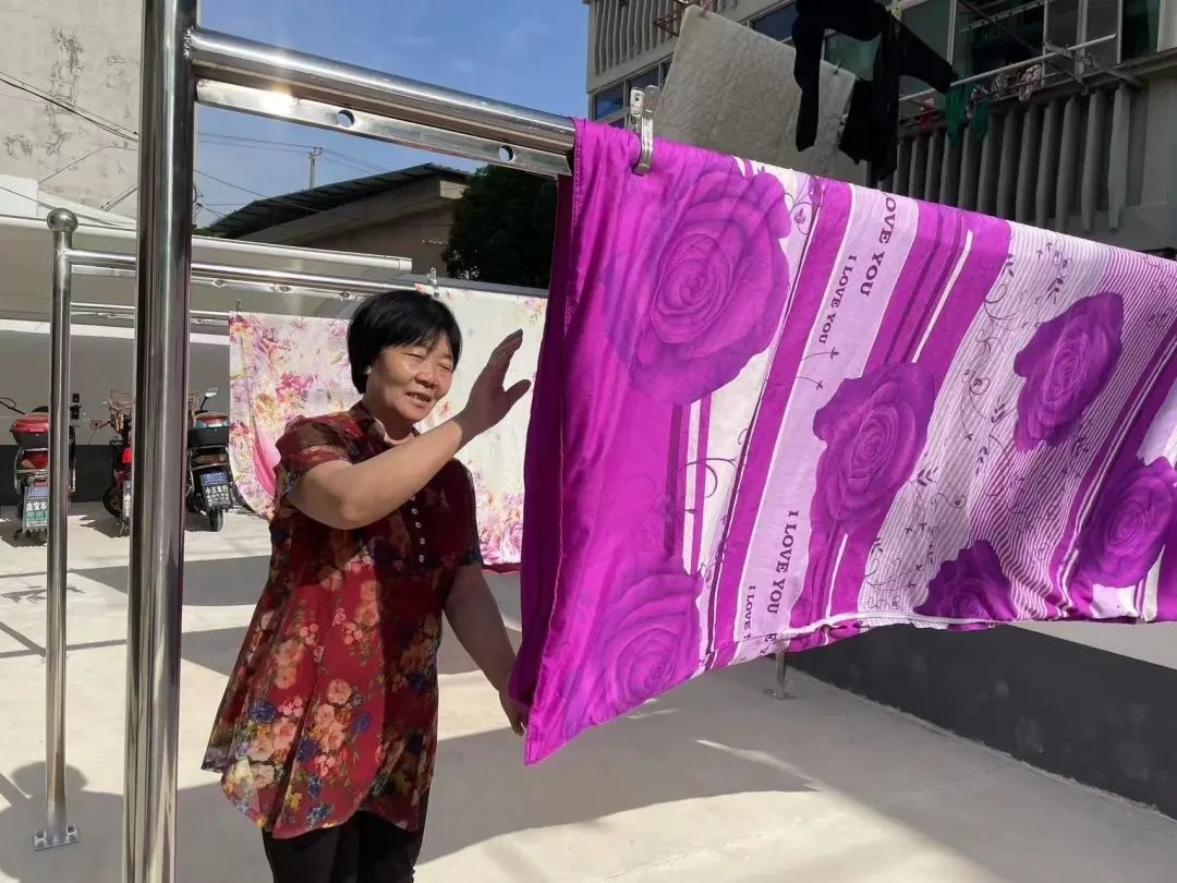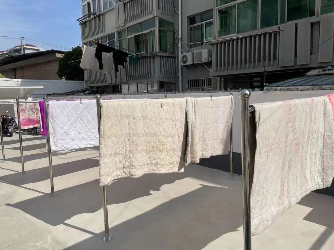 原来,周老伯住的是上世纪80年代建造的老式楼房,并且紧挨着公路,因找不到合适的空间,居民们的“晾晒难”问题迟迟未能解决。一些住平房或住在底楼的居民习惯在楼前或院子内拉绳索、架竹杆晾晒衣物,有的甚至直接在绿化带、电线杆间晒被子,不仅影响城市文明形象,也增加了安全隐患。