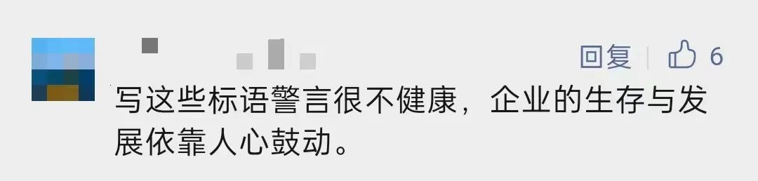 也有网友指出,这些标语“很不健康”,也恰恰是企业不自信的表现。
