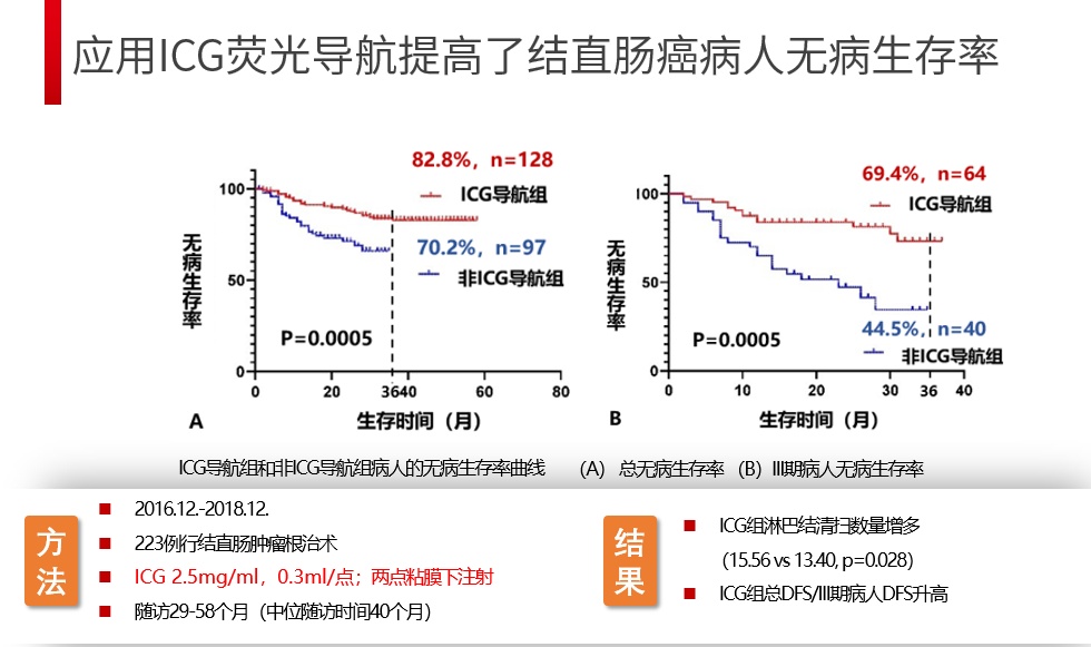 应用ICG荧光导航提高了结直肠癌病人无病生存率。