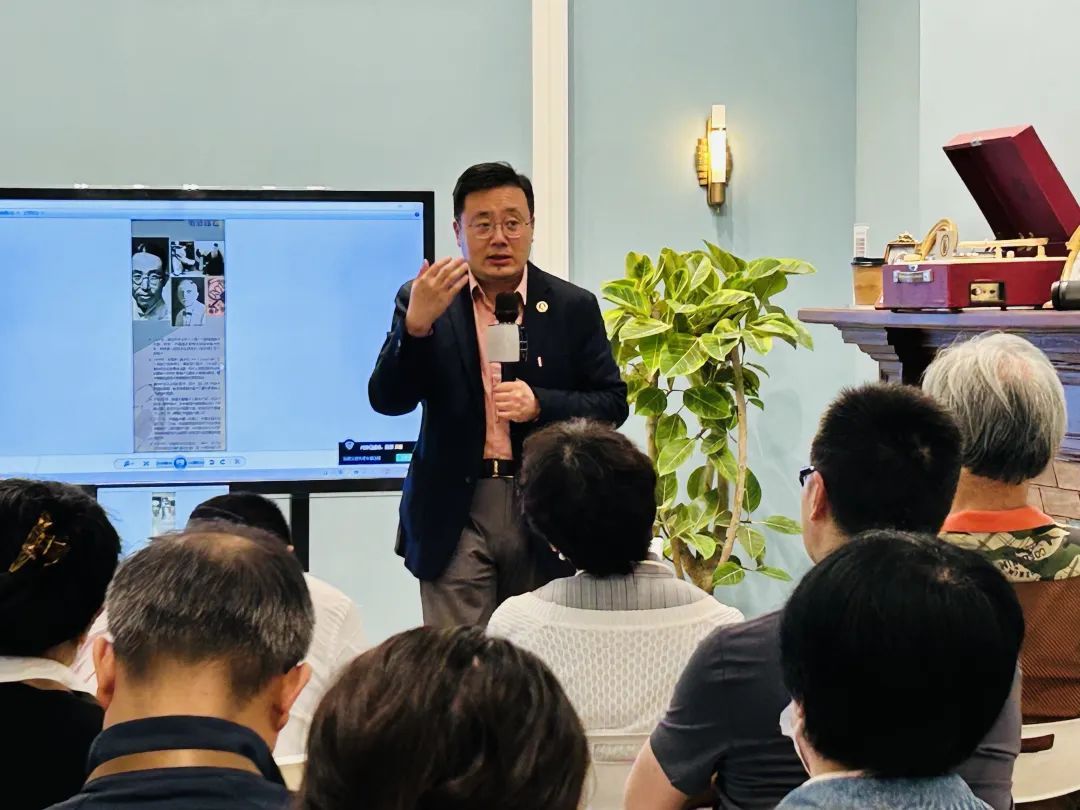 “快闪”表演后,百代小楼首批专家团成员、上海音乐学院研究员韩斌带来一场精彩导赏“百代对中国现代音乐国际化的贡献”,从“时代曲”的传播、百代歌星走向世界、经典黑胶国际版本等几个历史节点,讲述百代与国际音乐交融共鸣的精彩故事。