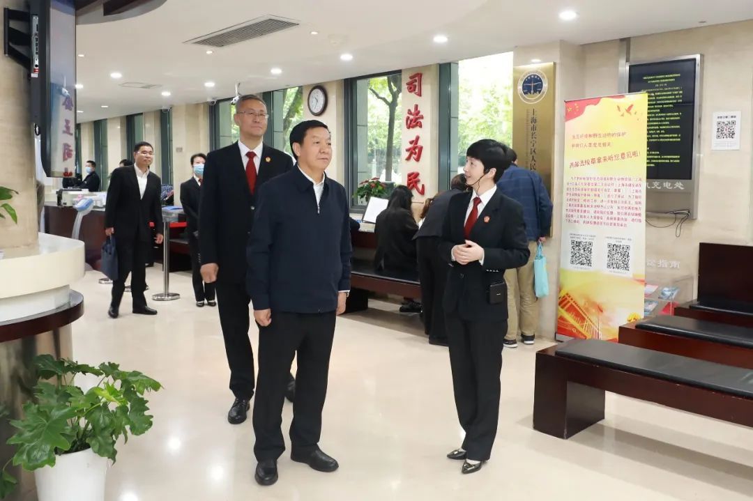 在后续考察长宁区人民法院过程中,贾宇了解了互联网法庭的设置情况,并多次提到数字化改革对法院工作的重要性:“全国首批、上海首个互联网审判庭在长宁区人民法院成立,先发优势一定要用好,更要铆足后劲,探索出数字改革赋能的新路子。”
