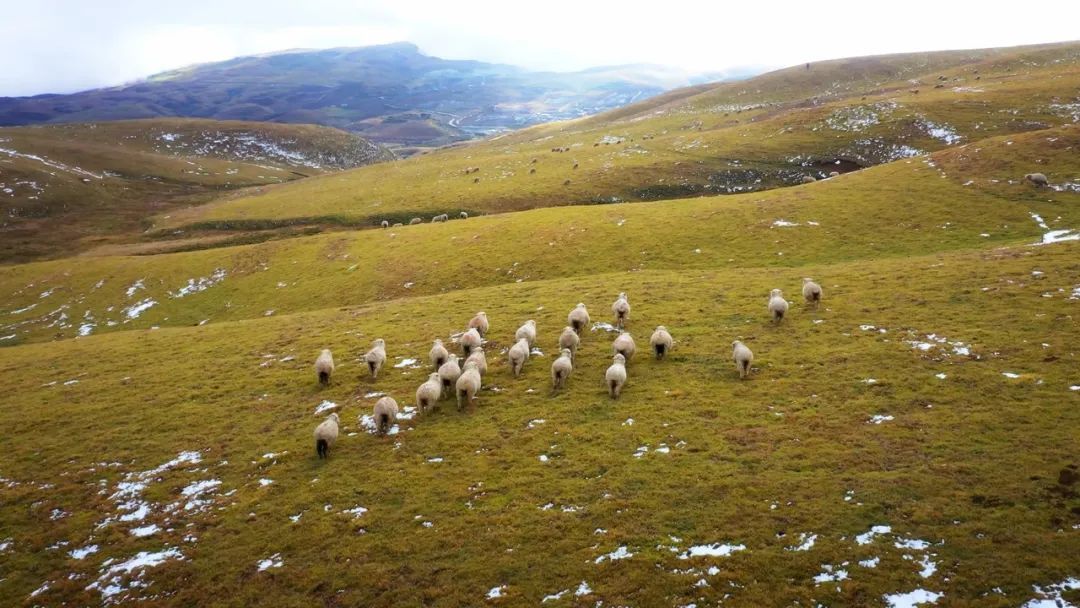 万亩草场几乎覆盖了整个马楠山顶,羊洞子、羊槽、老铁厂等地多呈缓坡分布,艳阳高照,碧空如洗,群羊如盛开的棉朵悠游款款。