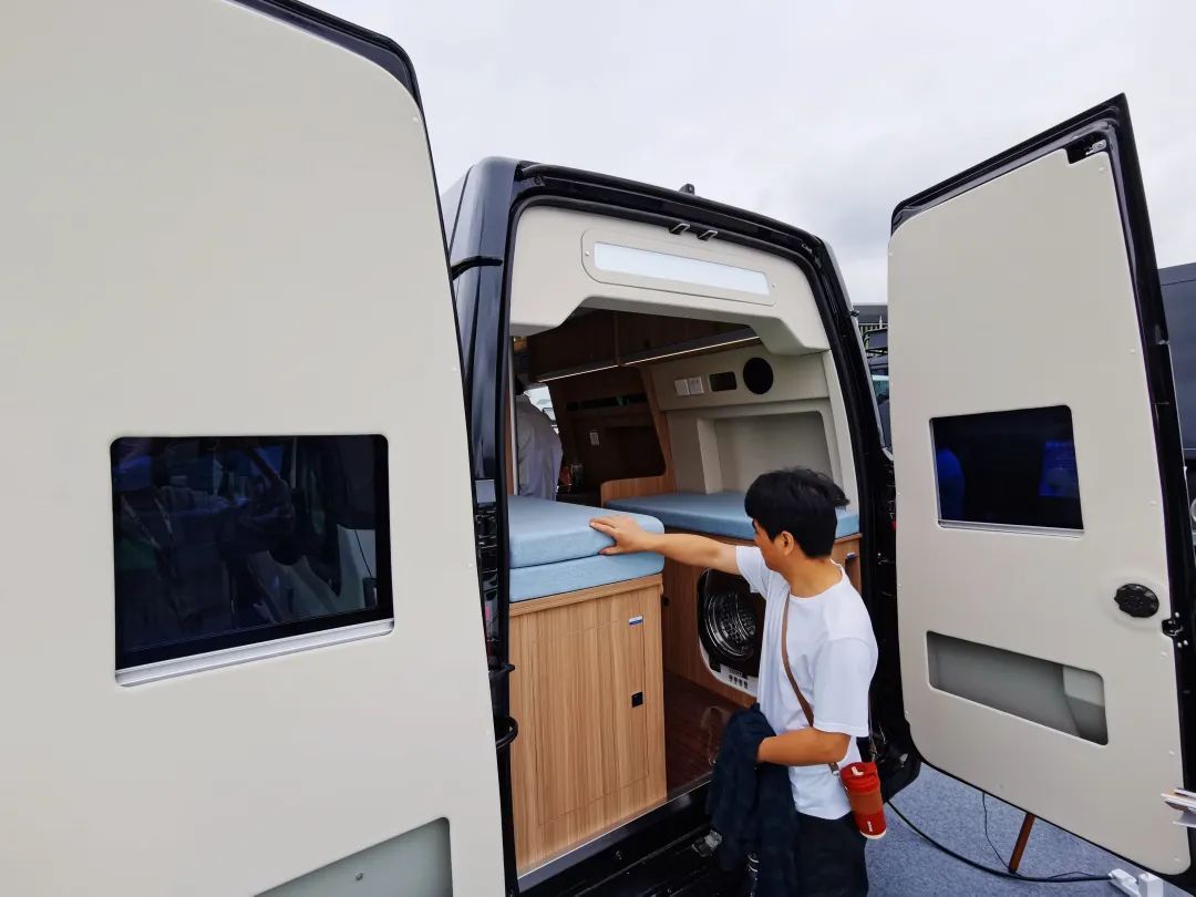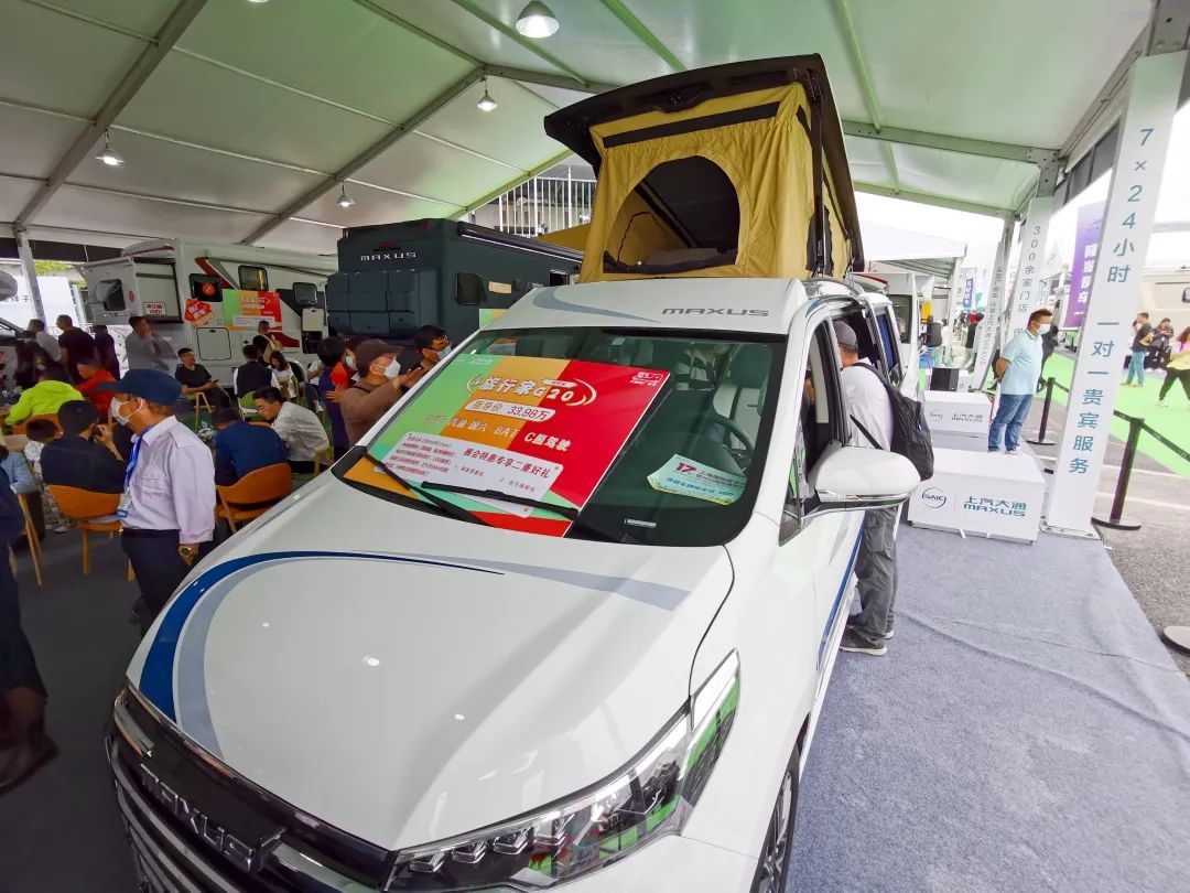在展台的一侧,一款全国限量10辆的旅行家G20升顶房车,让房车驶入地库成为可能。参展商、上汽大通房车上海直营店总经理张峰介绍:“这款车的特点就是车顶在行驶过程中可以下降,方便驶入地库,既可以作家用代步车,也适合短途旅游和商务场景。”