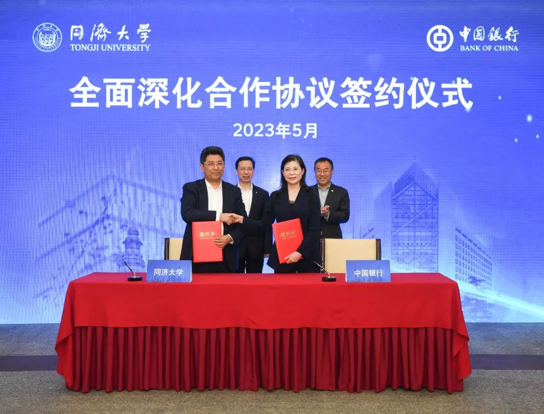 今天(5月19日),同济大学与中国银行股份有限公司(以下简称“中国银行”)签署全面深化合作协议,双方强强联合,进一步全面深化银校合作关系,携手为推进中国式现代化贡献智慧和力量。