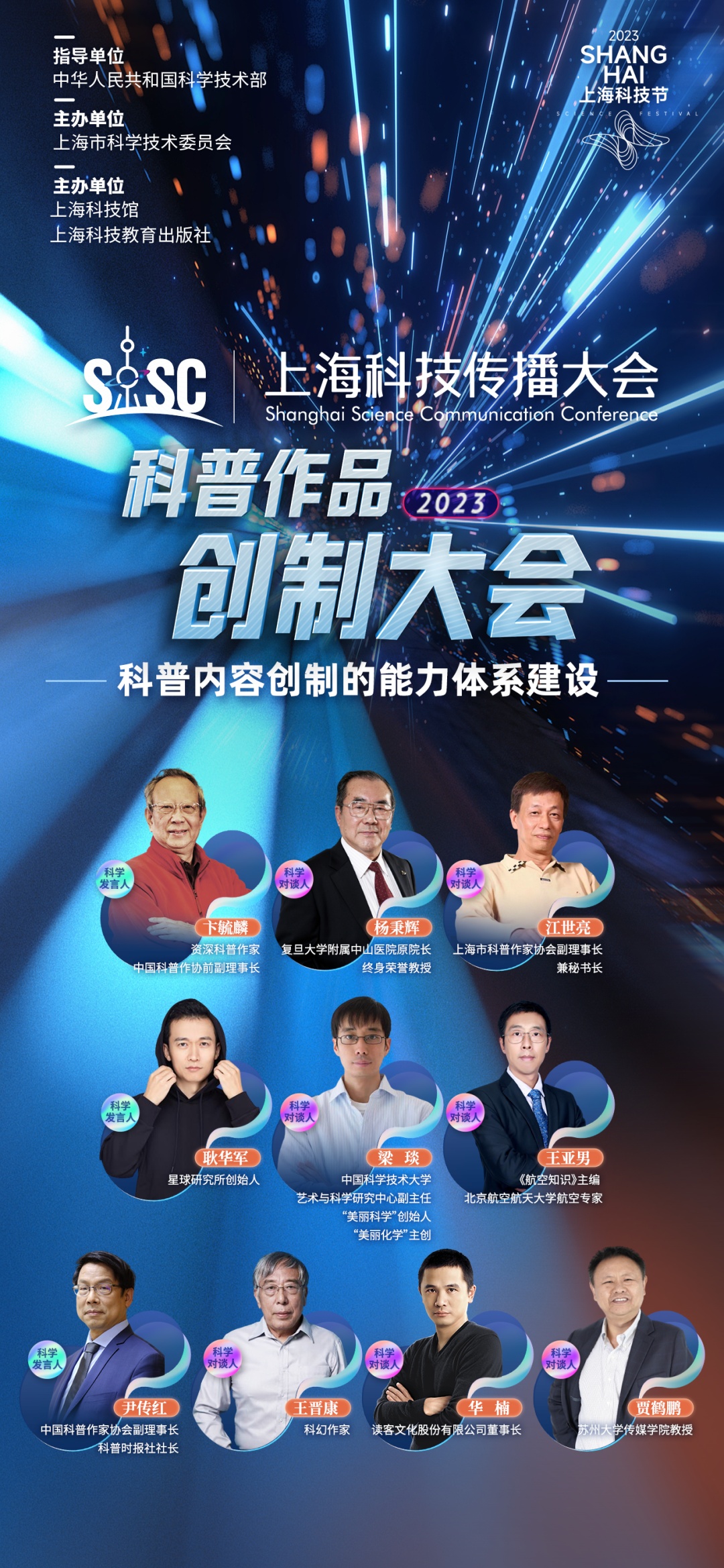 资深科普作家卞毓麟、科幻作家王晋康、科普时报社社长尹传红、复旦大学附属中山医院原院长杨秉辉、上海市科普作家协会副理事长江世亮、星球研究所创始人耿华军、“美丽科学”创始人梁琰、《航空知识》主编王亚男、读客文化股份有限公司董事长华楠等资深科普内容创制专家,将在本次大会上共同探讨如何创制与各类媒介相适应、更广泛触达受众的优秀科普作品。
