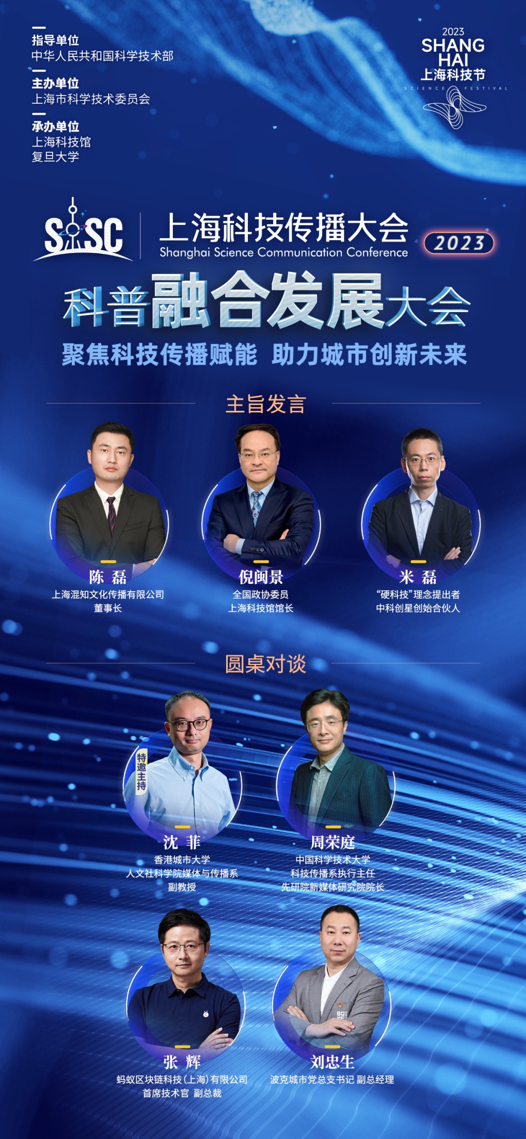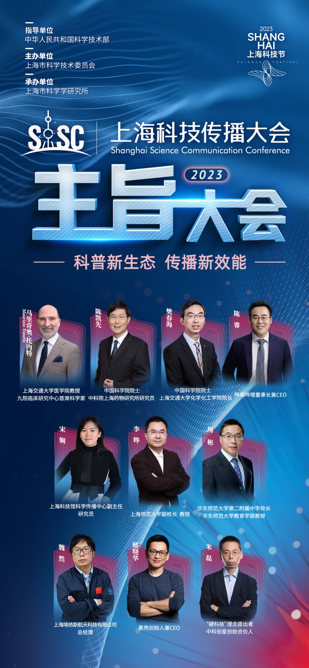 上海科技馆馆长倪闽景、Bilibili董事长兼CEO陈睿、果壳创始人兼CEO嵇晓华、混知文化董事长陈磊、中科创星创始合伙人米磊、上海埃依斯航天科技有限公司总经理魏然、蚂蚁区块链科技(上海)有限公司首席技术官张辉、波克城市副总经理刘忠生等科研科普相关主体的负责人或运营者,以及中国科学技术大学教授周荣庭、香港城市大学副教授沈菲等科技传播学者,将围绕深刻影响互联网时代每个个体、正在勃兴的科普产业新赛道进行探讨。