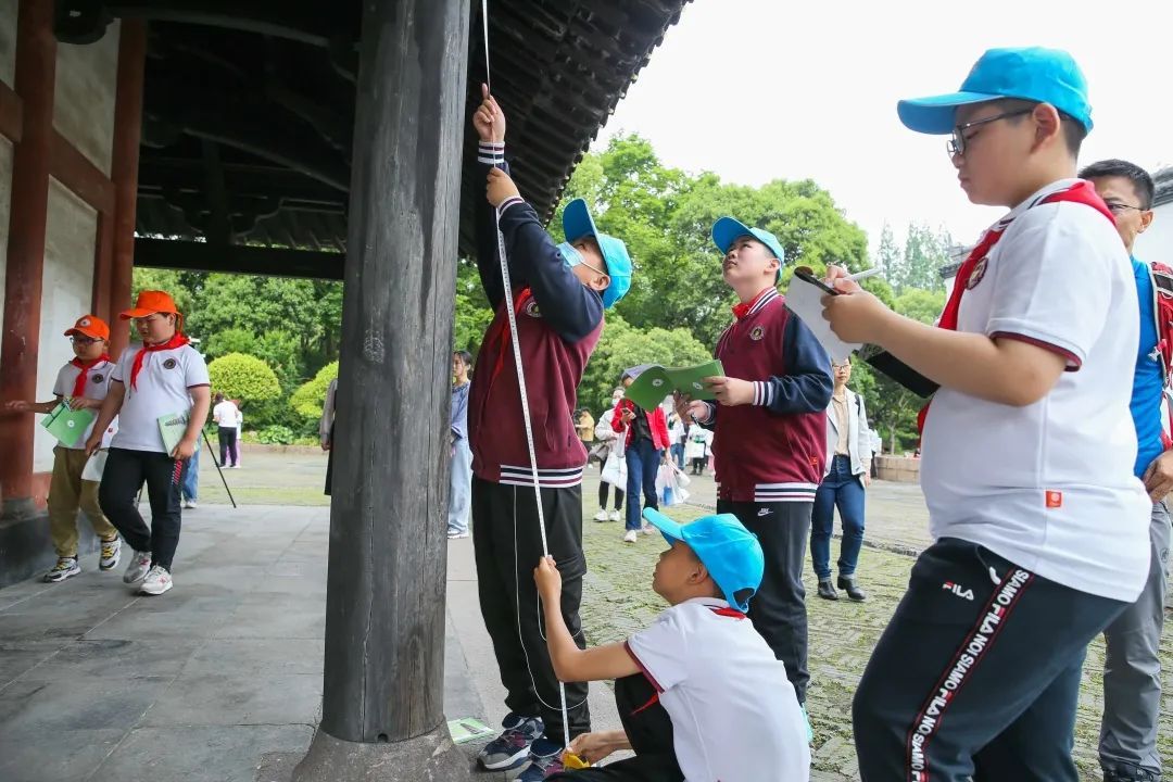 研学日一大早,在老师的带领下,学生们来到方塔脚下,分组展开行动,一场动手动脑的探究性学习课程热闹展开。他们有的测量塔身地基高度,有的负责记录,还有的利用平板电脑、无人机对方塔进行拍摄。方塔小学教师吴双介绍,研学活动开展前,大家围绕方塔缘何不倒进行了大胆猜测,一些学生认为是建筑结构比较稳固,也有学生推测是建筑材料比较耐腐蚀,还有的学生猜测是塔身外观装置有稳固塔身的作用。