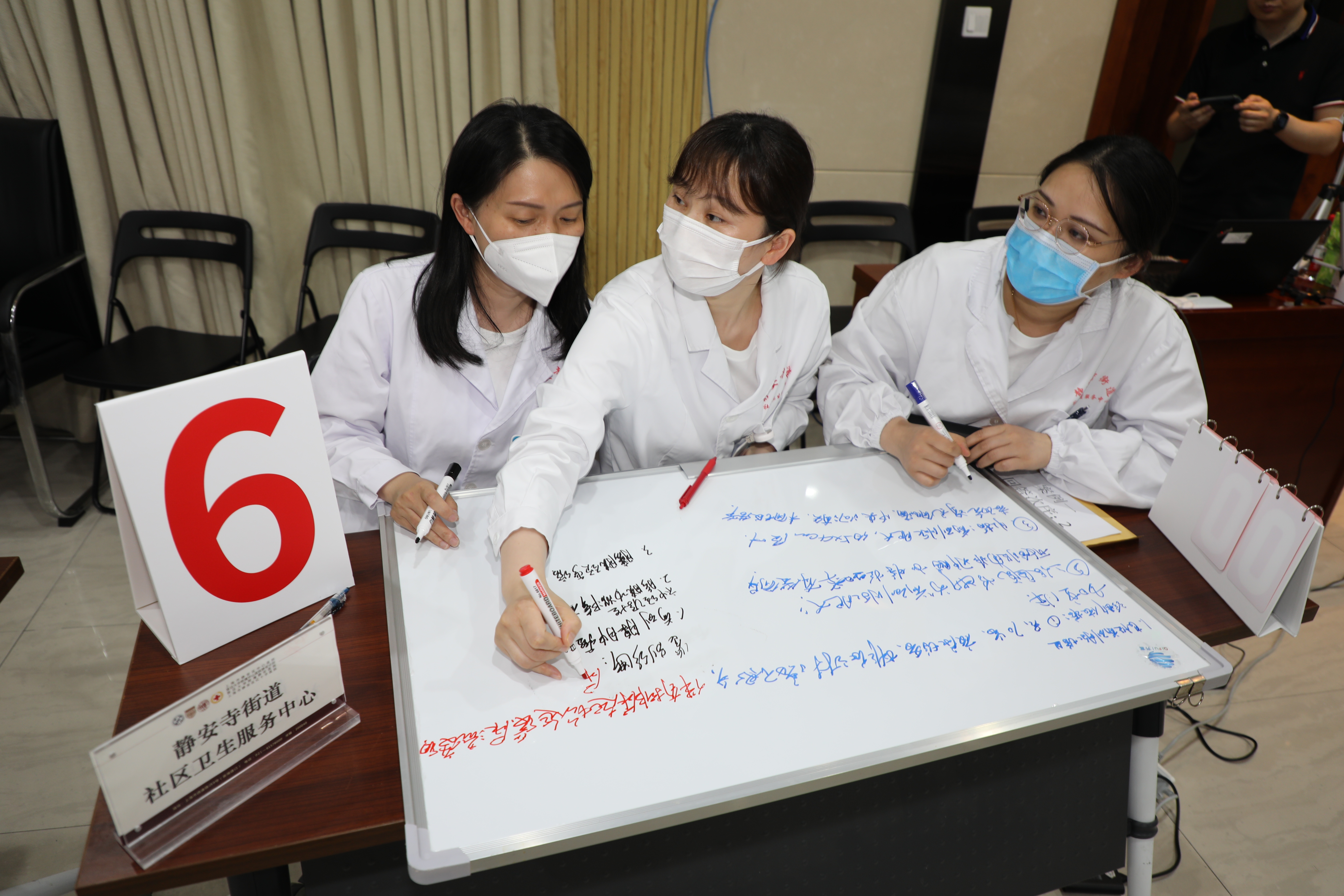 本次竞赛由静安区中心医院和曹家渡街道、江宁路街道、静安寺街道、南京西路街道、石门二路街道五家街道社区卫生服务中心选派的6支代表队,共18人参加。