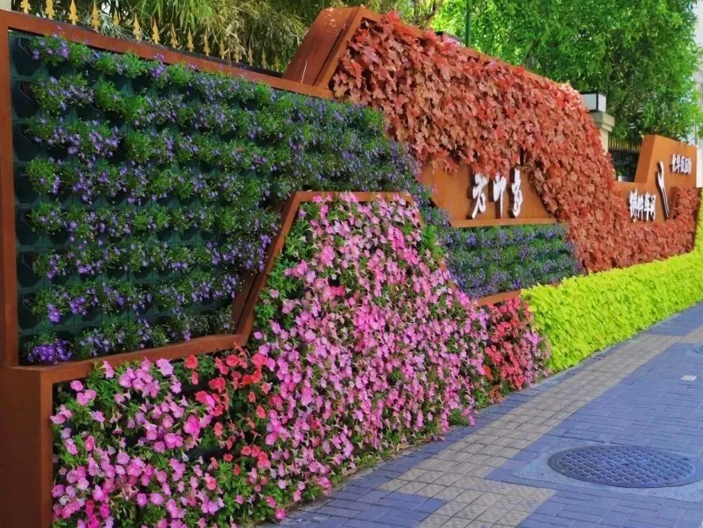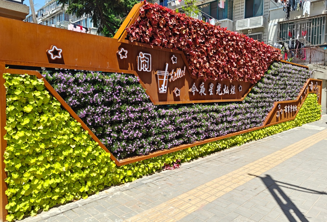 曲沃路450号通道是彭浦新村街道办事处的入口,常年向居民开放且通行便捷。经区绿化市容局与彭浦新村街道多次踏勘商讨,共同决定以绿墙为载体,打造兼具宣传功能的立体绿化新形式,充分体现“绿化+”理念。