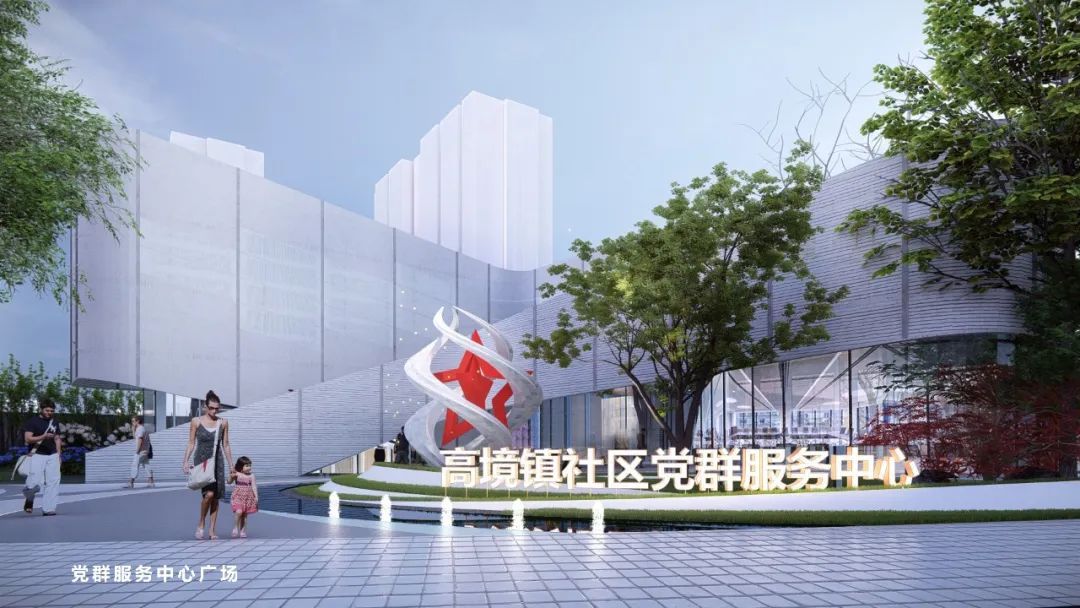 设计方对原有建筑进行改造,打造高境镇社区党群服务中心B区,建设全时段全龄友好共融空间,围绕居民、新就业群体等不同人群的需求,突出党群阵地政治功能基础,融入社区共融营造工作室、24小时智慧社区办事厅、社区图书馆、社区餐厅等功能,致力让党建元素嵌入城市肌理、市民乐享美好生活。