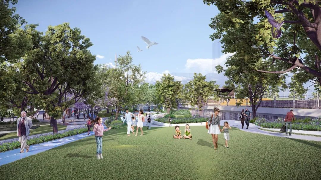 邀请本地上市企业尤安公司进行设计,利用地上架空层做空间布局,架空层下方作为停车及行车。地上部分包括多层次的绿化种植、景观小品、健身设施,配套夜景灯光,并充分考虑市民多层次、多类型需求,持续推动绿色空间与文化、科普、体育、休闲等城市功能深度融合,将成为城市绿肺,市民休憩的好去处。