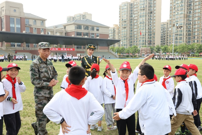 上海应用技术大学的退伍大学生来到小学生的身边,通过队列和擒敌拳展示、Mini军训、讲述军营故事等方式,把国防教育、征兵宣传融入第二课堂,燃起了小学生们立志从军保家卫国的那份渴望和初心,当兵要从娃娃抓起,打好身体基础是前提。
