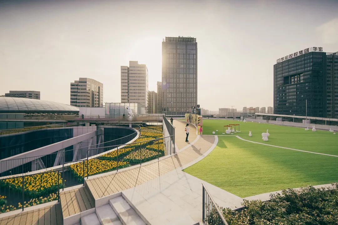 拥有“年轻、时尚、潮流、品位”基因、“街区+盒子”双重形态商业体、强烈的户外开放感,全场随处可见潮流艺术打卡点:太阳花UU的跷跷板、MIGO&FUFU的抱抱座椅……