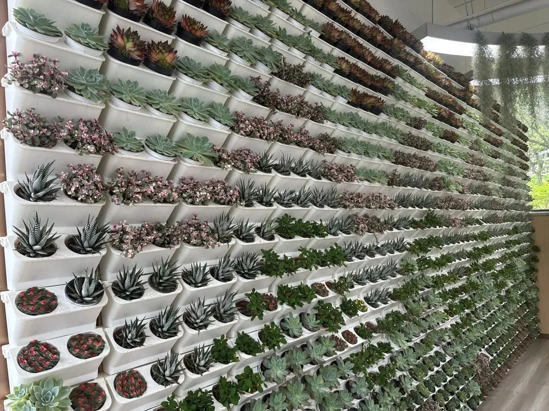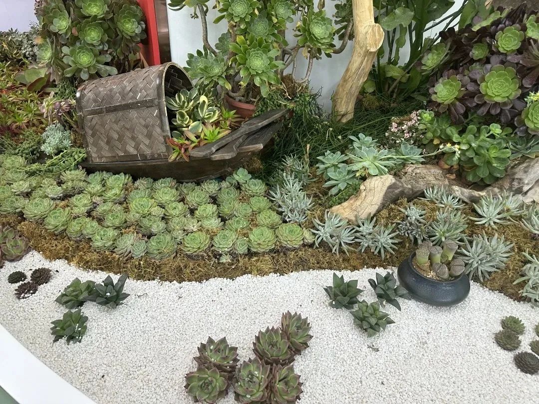 多肉展示区将各种颜色、各种姿态的多肉汇聚在半空中、岛台面、地板上,使游客能切身感受到多肉植物的多样性、观赏性。